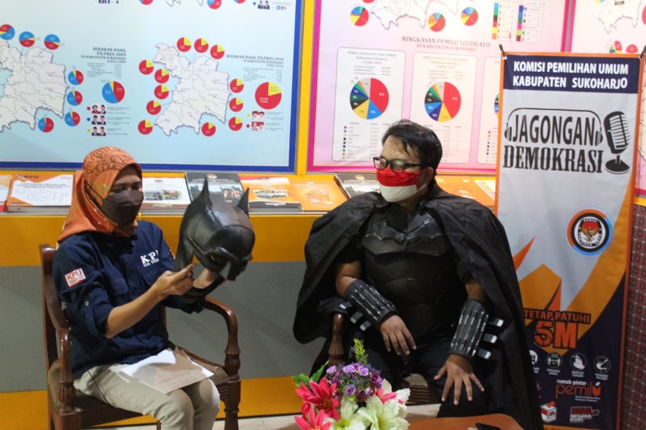 #TemanPemilih #sederekpemilih Mengingatkan warga masyarakat mengunakan hak pilih dalam Pemilu Pemilihan adalah salah satu kontribusi positif yang dilakukan warga demi kesuksesan gelaran pesta demokrasi di Sukoharjo. Agar menarik perhatian tentu kreativitas menjadi kunci utama. Seperti yang dilakukan warga Sukoharjo , mengunakan kostum superhero . Dan terbukti mampu menarik perhatian warga antusias mengunakan hak pilih.