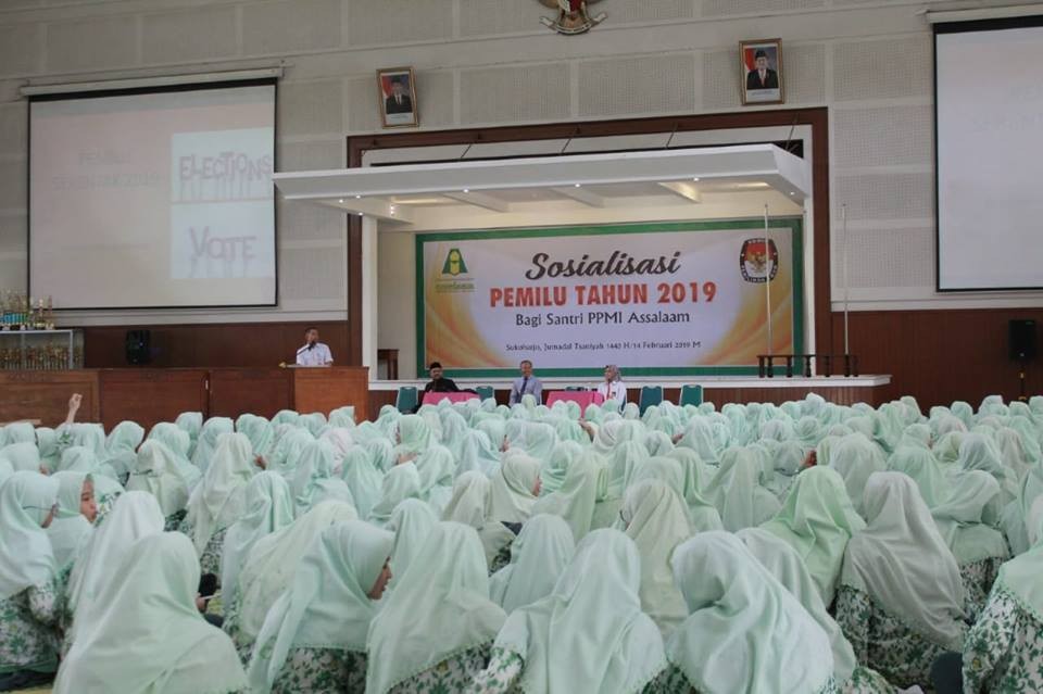 KPUSKH- 700 santriwan/santriwati dari Pondok Pesantren Assalam Sukoharjo mendapatkan sosialisasi Pemilu 2019 dari KPU kabupaten Sukoharjo, Selasa(12/2/2019) , bertempat di aula Ponpes Assalam.