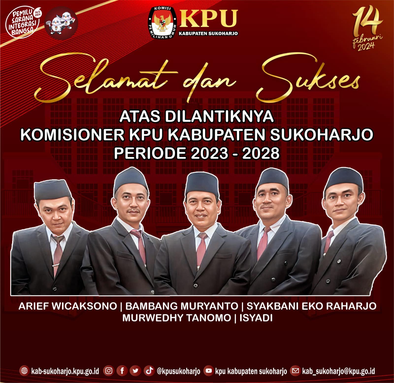 KPU Kabupaten Sukoharjo mengucapkan Selamat dan Sukses atas dilantiknya Anggota KPU Kabupaten Sukoharjo Periode 2023 - 2028.