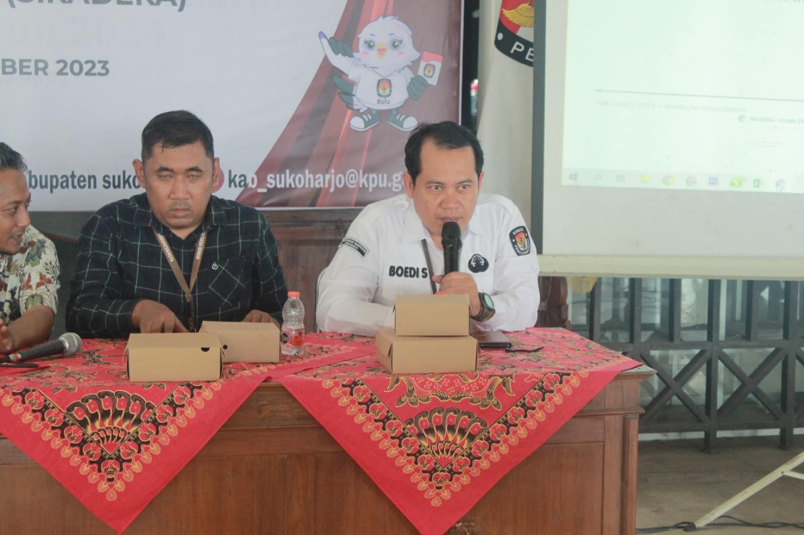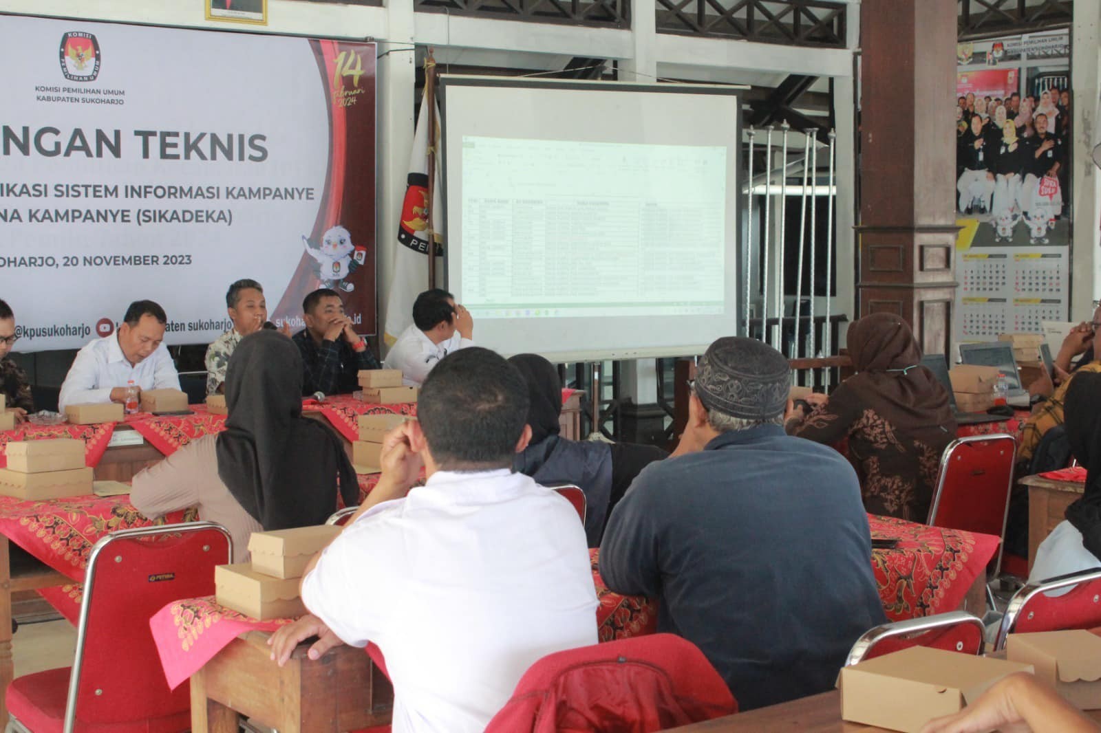 KPU Kabupaten Sukoharjo menyelenggarakan Bimbingan Teknis Penggunaan Aplikasi Sistem Informasi Kampanye dan Dana Kampanye (SIKADEKA) pada Hari Senin (20/11/2023) di Pendopo KPU Kabupaten Sukoharjo.