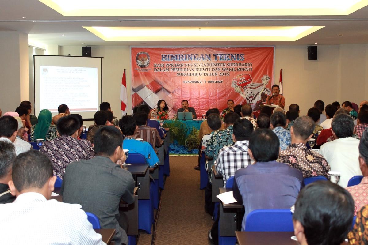 Kamis, Jumat dan Minggu tanggal 4, 5 dan 7 Juni 2015 KPU Kabupaten Sukoharjo menyelenggarakan Bimbingan Teknis (Bimtek) bagi PPK dan PPS se-Kabupaten Sukoharjo yang dibagi dalam tiga gelombang karena banyaknya peserta.