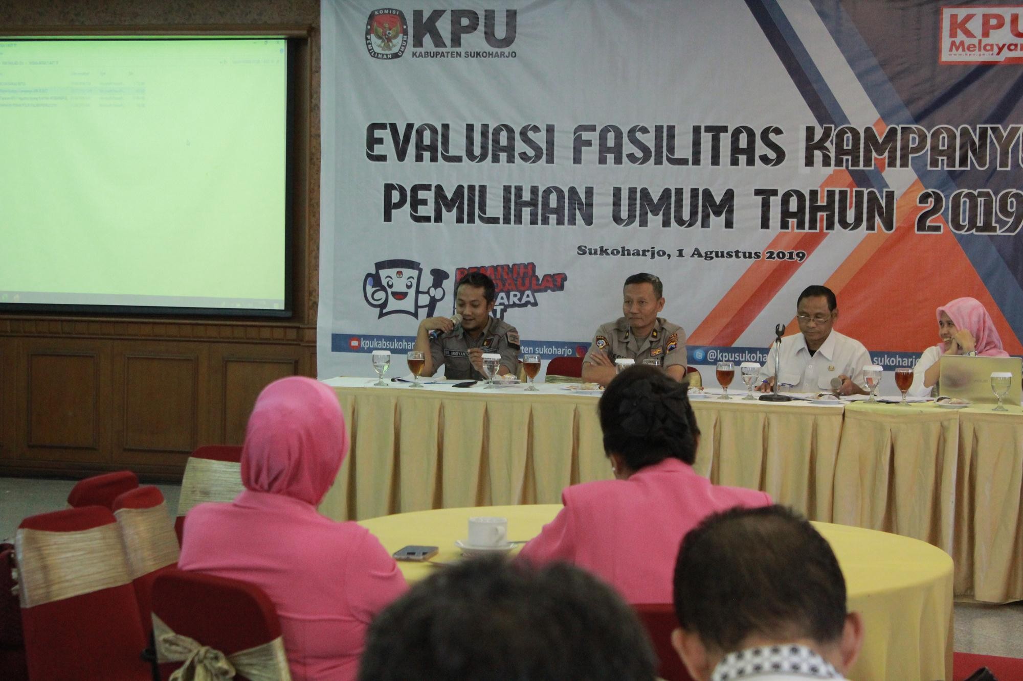 Dalam evaluasi fasilitasi kampanye , KPU Sukoharjo mengundang partai politik, tokoh masyarakat, pemerintah daerah seperti Kesbagpol, Satpol PP, bagian pemerintahan, Dishub dan organisasi masyarakat serta media.