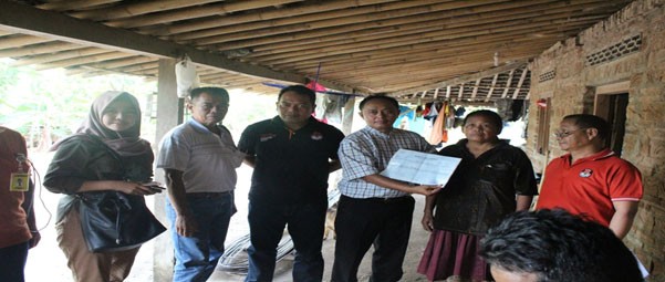 Istri Agus Wiyono, Endang Kartini ( dua dari kanan) dan Tim Verfak memperlihatkan data KK