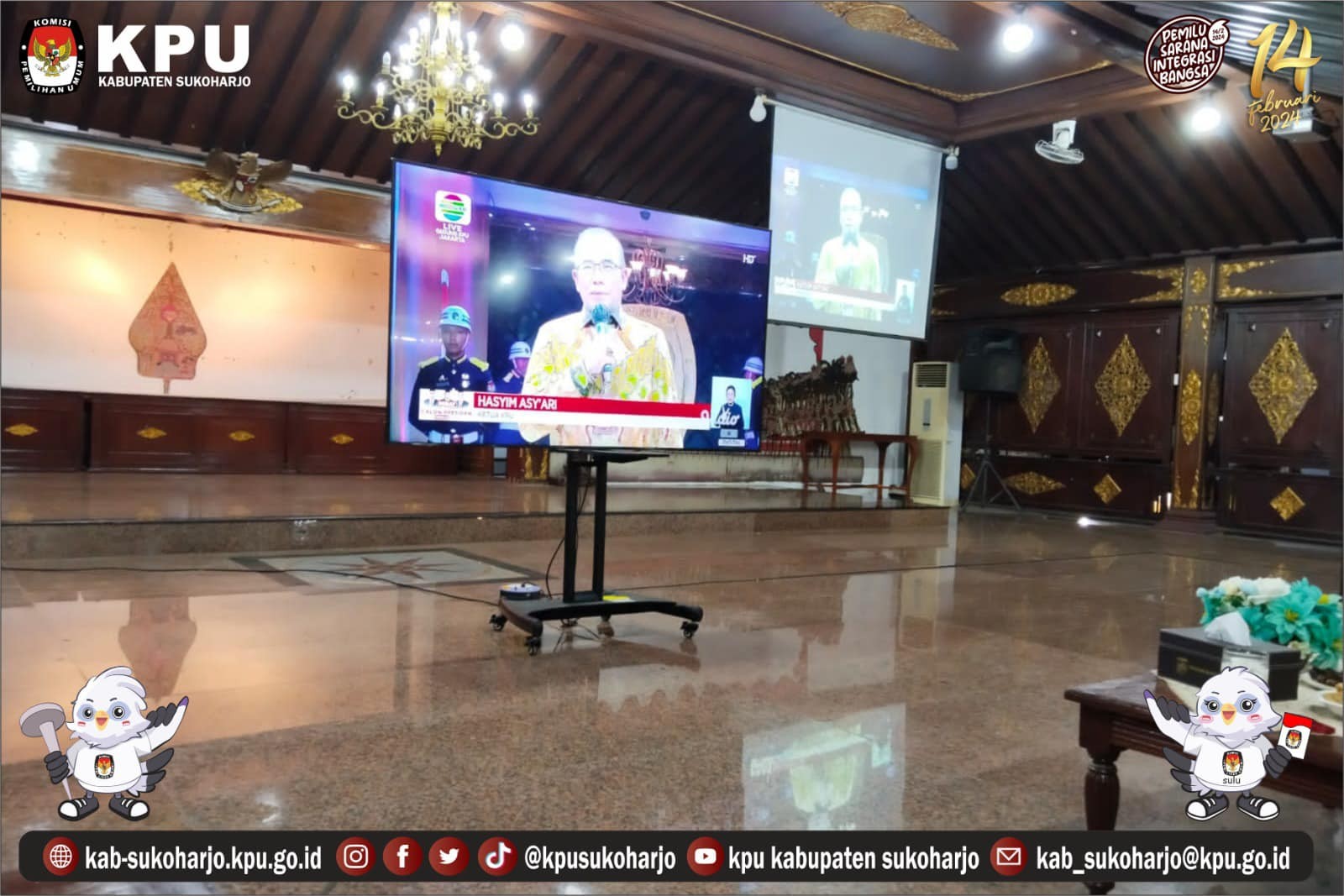 KPU Kabupaten Sukoharjo menghadiri nonton bareng Debat Pertama Calon Presiden Pemilu 2024 di Pendapa Graha Satya Praja, Sekretariat Daerah Kabupaten Sukoharjo (12/12/23).