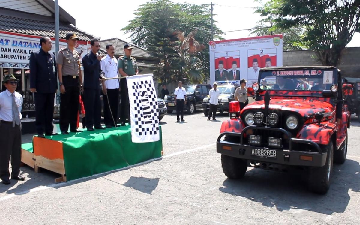 Pawai Dimulai dengan pengibaran bendera Start oleh Plt Bupati Sukoharjo, Drs Agus Santosa