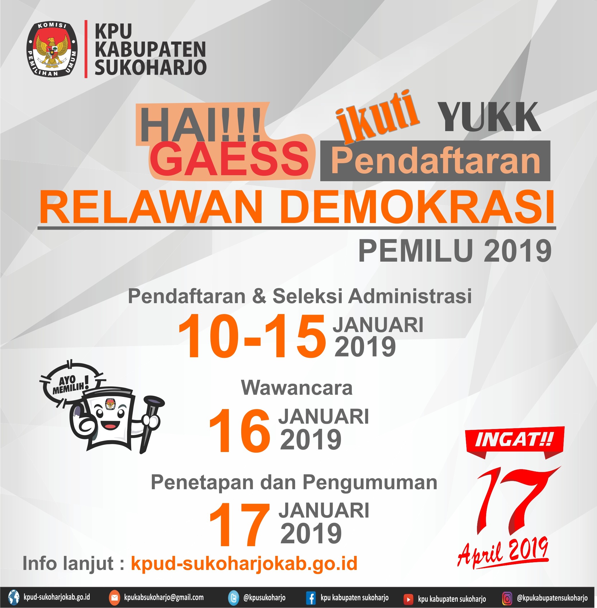 Pengumuman Pendaftaran Relawan Demokrasi Pemilu 2019 di Sukoharjo
