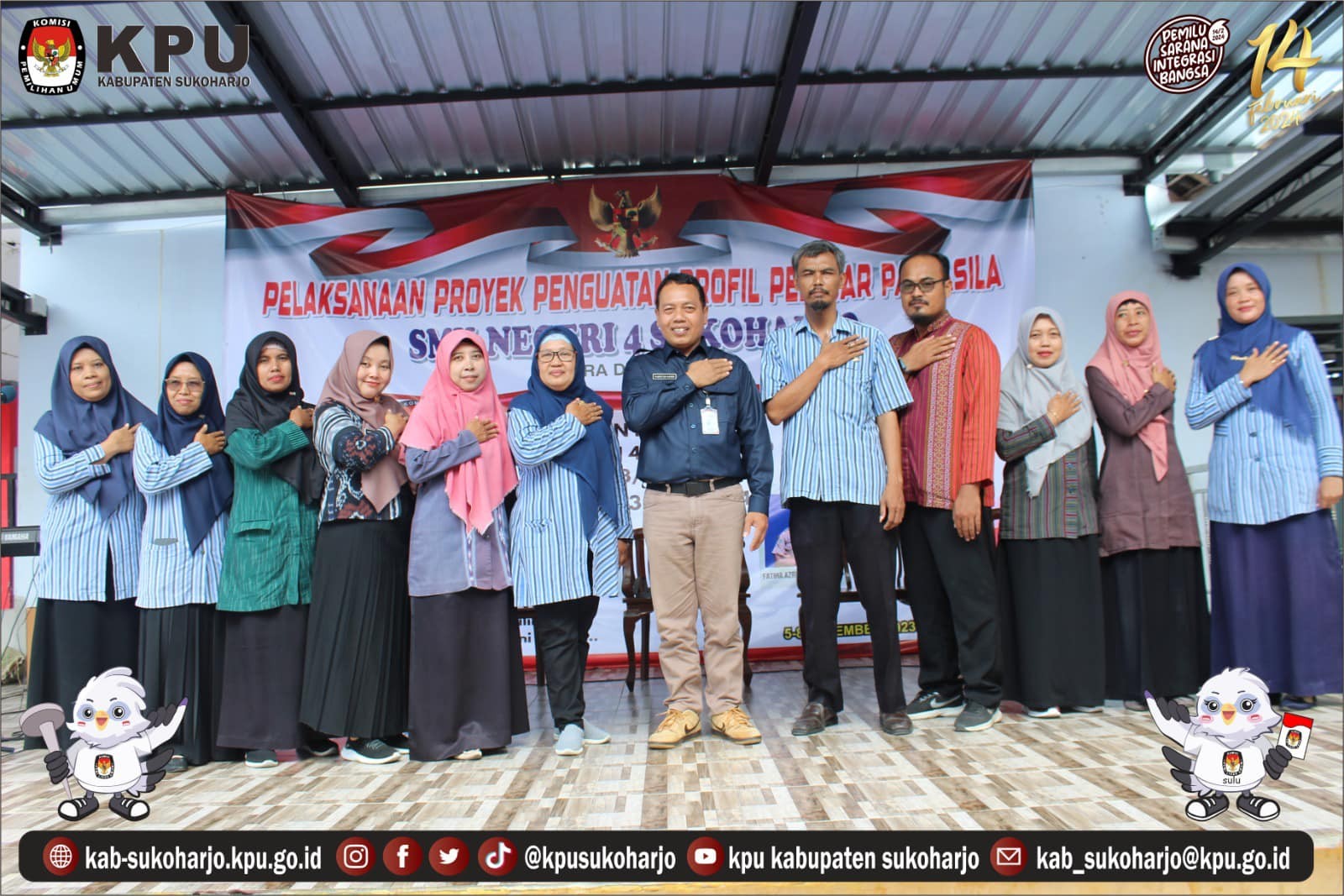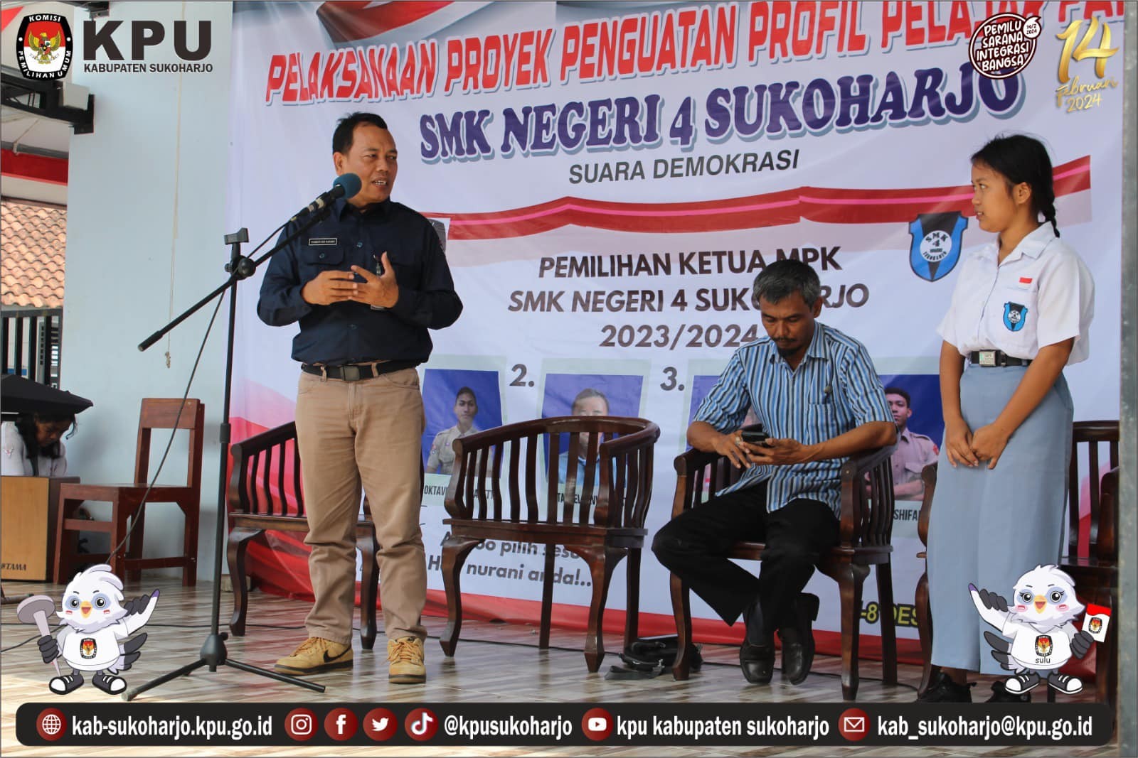 Ketua KPU Kabupaten Sukoharjo, Syakbani Eko Raharjo memenuhi undangan Kepala Sekolah SMKN 4 Sukoharjo dalam Projek Penguatan Profil Pelajar Pancasila (P5) Selasa (5/12/23).