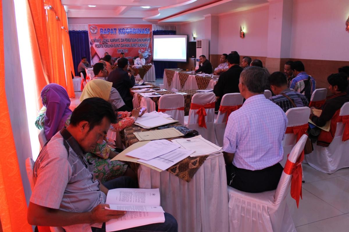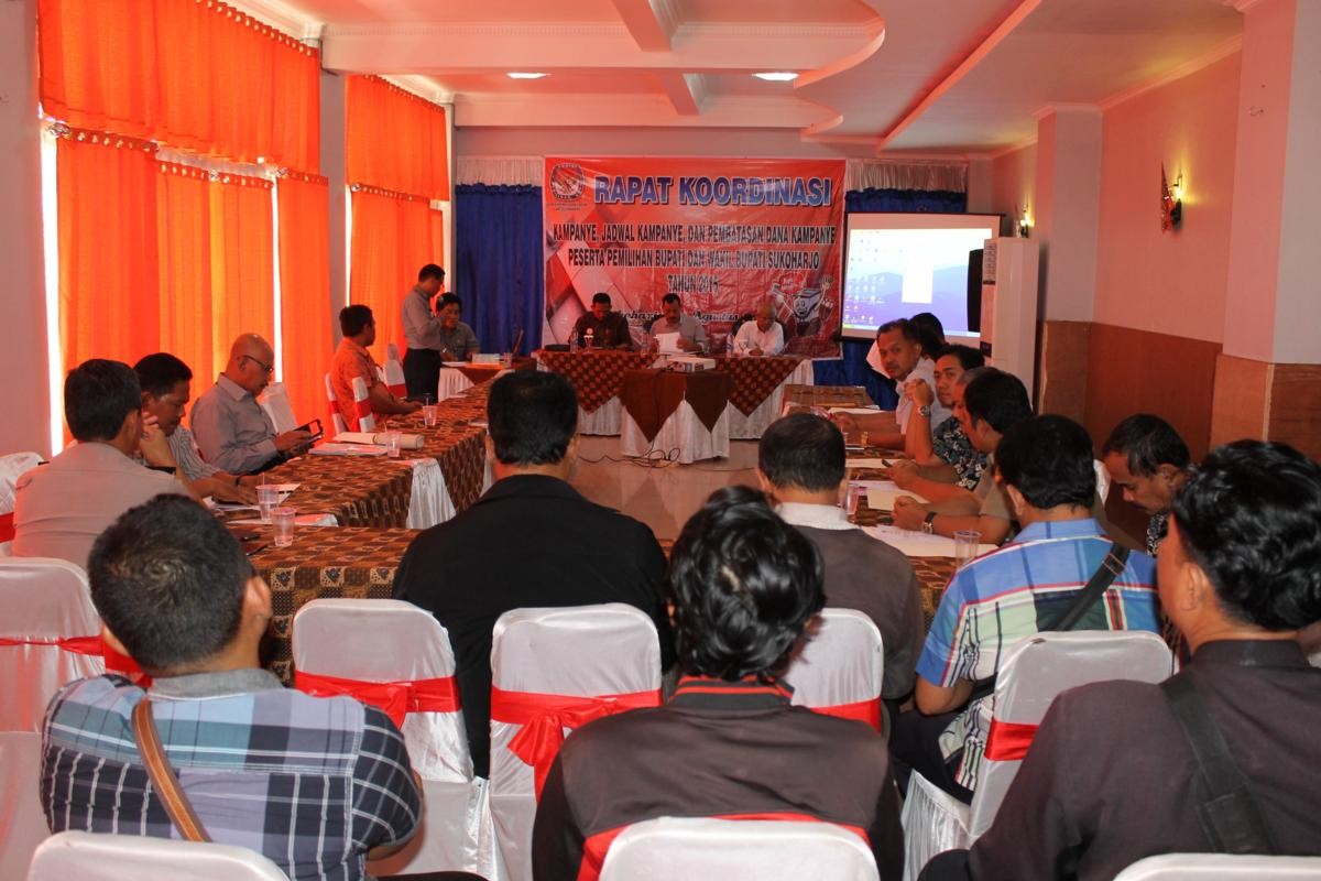 Kamis, 20 Agustus bertempat di Hotel Hapsari, Sukoharjo diadakan Rapat Koordinasi membahas Jadwal Kampanye dan Pembatasan Dana Kampanye. Rapat Koordinasi ini dihadiri oleh Partai pengusung Bakal Calon Bupati dan Wakil Bupati, Panwas dan Dinas-dinas terkait lainnya.