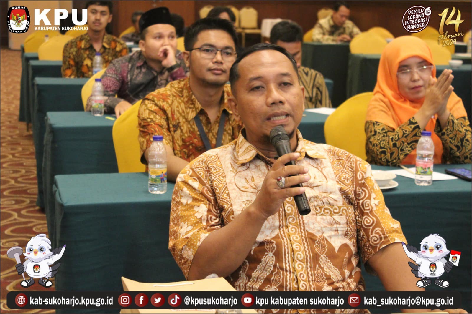 KPU Kabupaten Sukoharjo menggelar kegiatan bersama Panitia Pemilihan Kecamatan (PPK) se-Kabupaten Sukoharjo dalam acara Rapat Evaluasi Tahapan Pemilihan Umum Tahun 2024 Tahun Anggaran 2023 pada tanggal 2 sd 3 Desember 2023 di Dwangsa Solo Hotel By Lor In. Hadir dalam acara ini adalah Ketua Bawaslu, Rochmad Basuki dan Polres Sukoharjo Andy Prasetyo Wibowo, yang turut memberikan kontribusi berharga sebagai narasumber pada hari pertama kegiatan. Momentum ini dimanfaatkan untuk mendiskusikan dan mengevaluasi tahapan-tahapan penting dalam persiapan Pemilihan Umum Tahun 2024 dengan mengarahkan fokus pada Tahun Anggaran 2023.