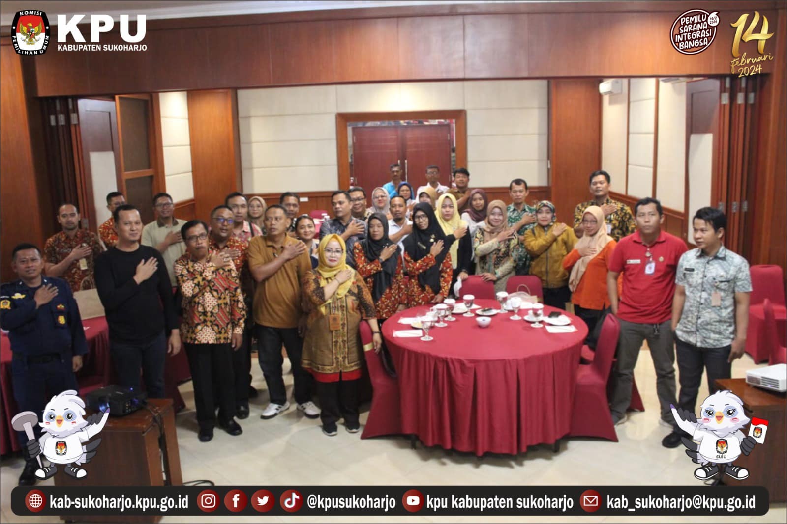KPU Kabupaten Sukoharjo menggelar Rapat Koordinasi dan evaluasi laporan pertanggungjawaban Badan Adhoc Pemilu Tahun 2024. Acara berlangsung di Hotel Tosan pada hari Jumat,(8/12/2023) dengan tamu undangan Ketua PPK, Sekretaris PPK, dan Bendahara PPK se-Kabupaten Sukoharjo.