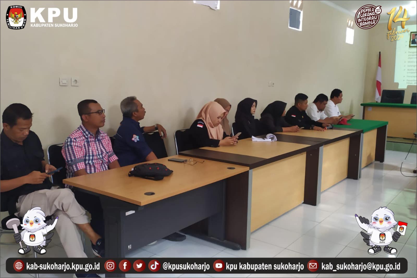 Selasa, 5 Desember 2023 KPU Kabupaten Sukoharjo menghadiri undangan Rapat Pemetaan Kerawanan Logistik Pemilu Tahun 2024. Rapat tersebut juga dihadiri dari Kepolisian Resort Sukoharjo, Satpol PP Kabupaten Sukoharjo, Badan Penanggulangan Bencana Daerah (BPBD) Kabupaten Sukoharjo. Acara tersebut membahas mengenai Perencanaan, pengadaan, distribusi logistik berjalan dengan baik. Juga terkait gudang untuk penyimpanan dan pengamanan logistik sesuai dengan ketentuan peraturan demi keamanan logistik pemilu.