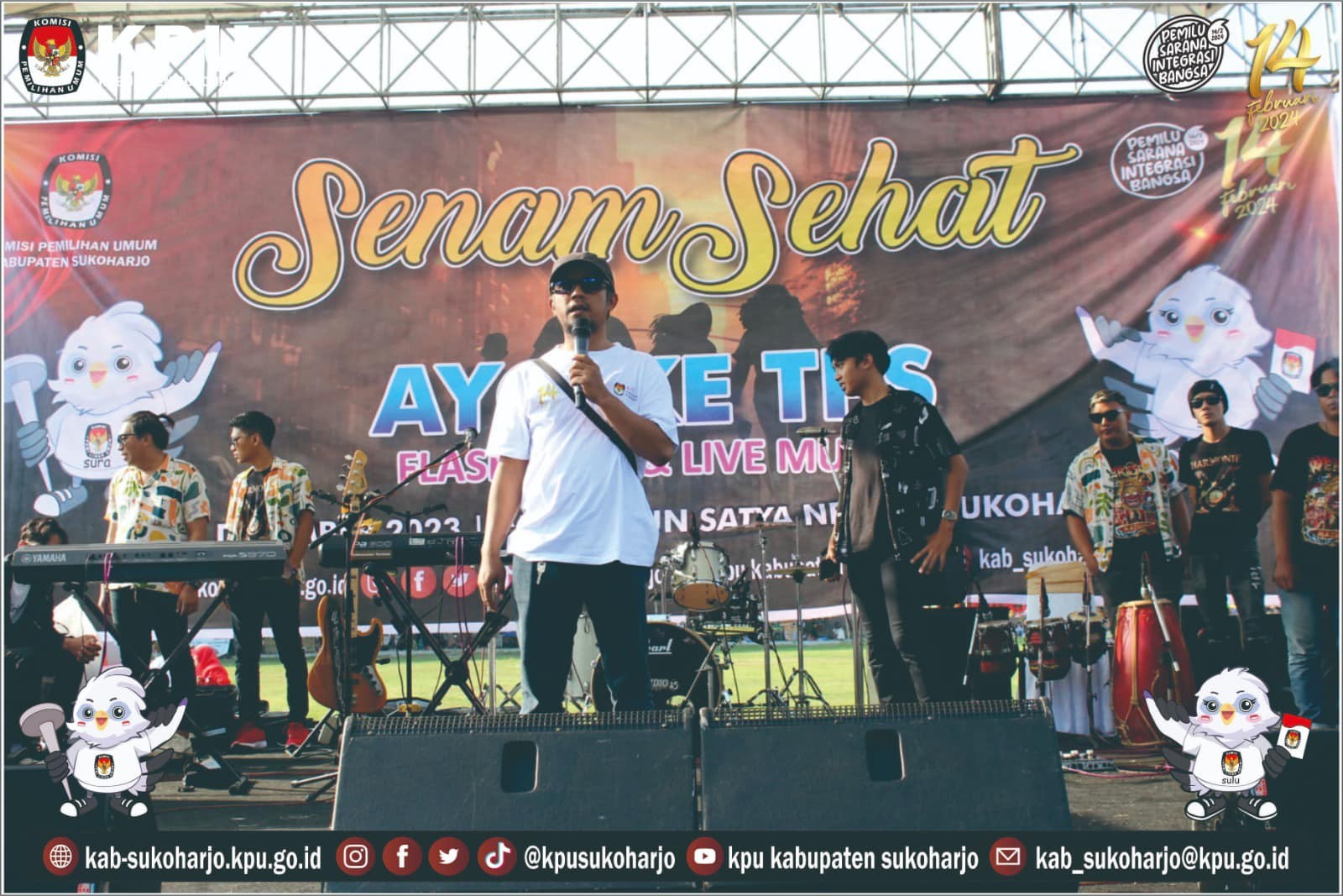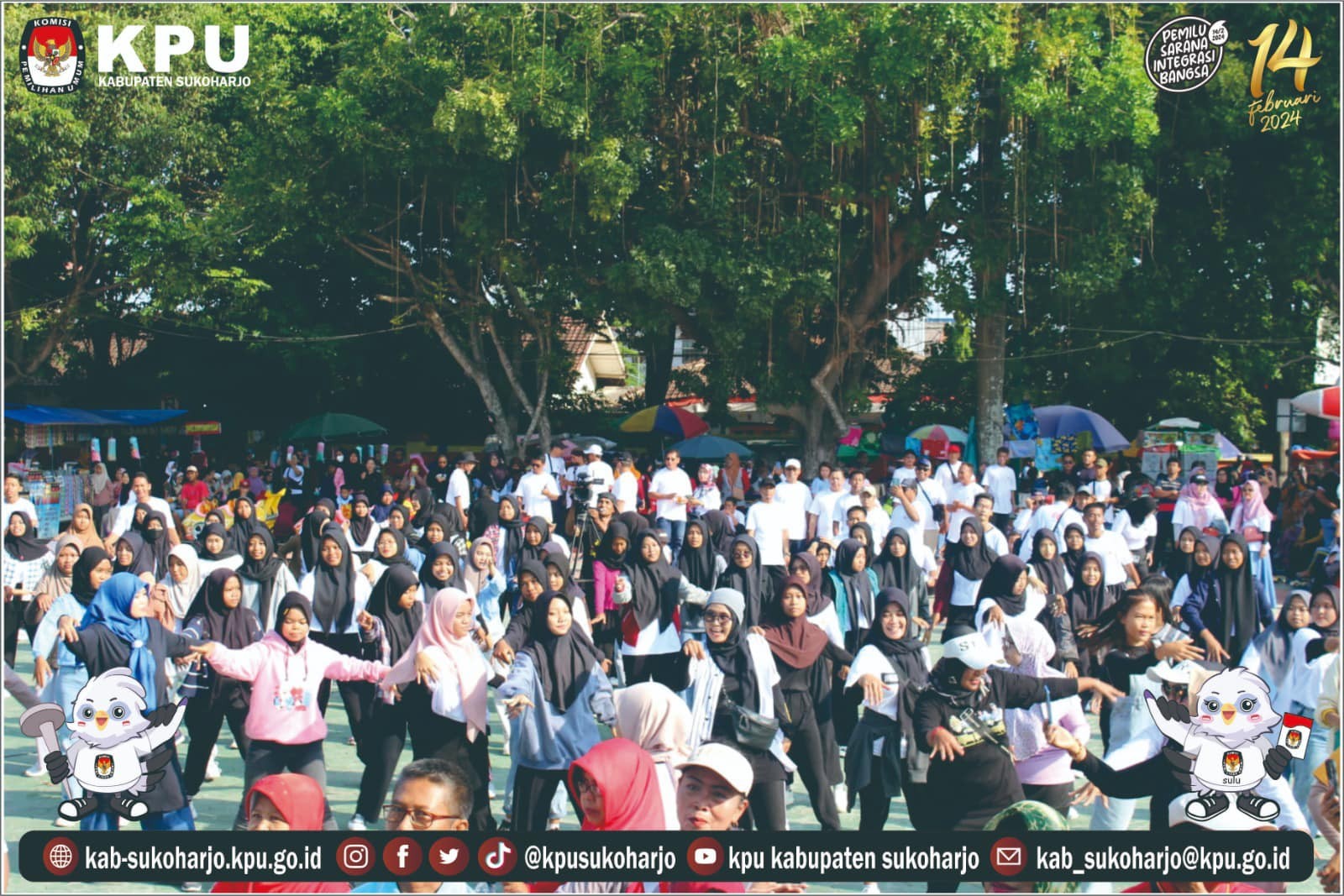 Minggu (24/12) KPU Kabupayen Sukoharjo mengadakan Kegiatan Senam sehat dan sosialisasi dengan membagikan leaflet dengan tajuk “AYO KE TPS” dalam rangka meningkatkan Partisipasi Pemilih dan Mensosialisasikan Pemilu Tahun 2024 kepada masyarakat umum.
