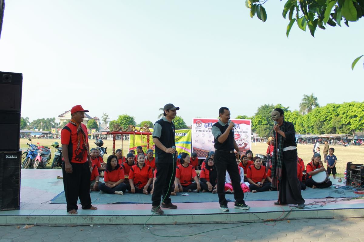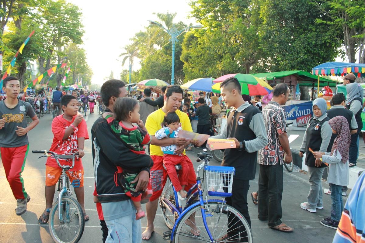 Selain pertunjukan, Staf KPU Sukoharjo juga membagikan Leaflet kepada pengunjung CFD Sukoharjo