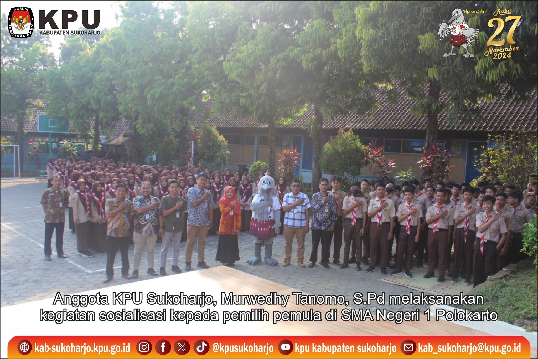 Anggota KPU Kabupaten Sukoharjo Murwedhy Tanomo Melaksanakan Kegiatan Sosialisasi pada Hari Jum'at, 7 Juni 2024 kepada Pemilih Pemula Siswa-siswi SMA Negeri 1 Polokarto.