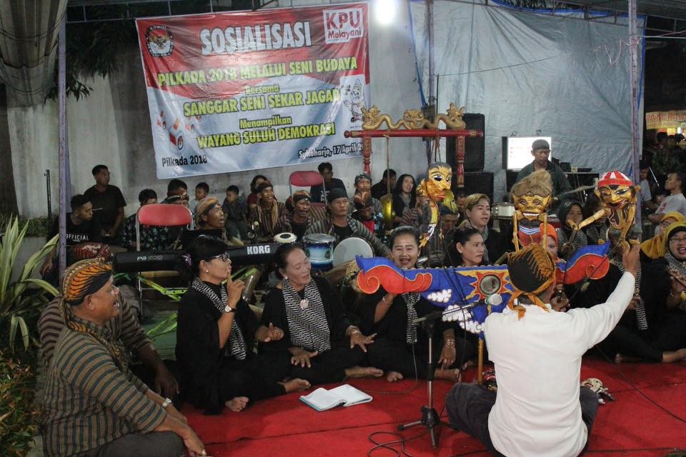 Sosialisasi Pilgub Jateng 2018 menampilkan wayang suluh demokrasi bersama sanggar seni sekar jagad di gedung eks kawedanan bekonang, Mojolaban, Sukoharjo pada 17 april 2018 malam #kpusukoharjo #kpumelayani #becikturnyenengke #pilgubjateng2018