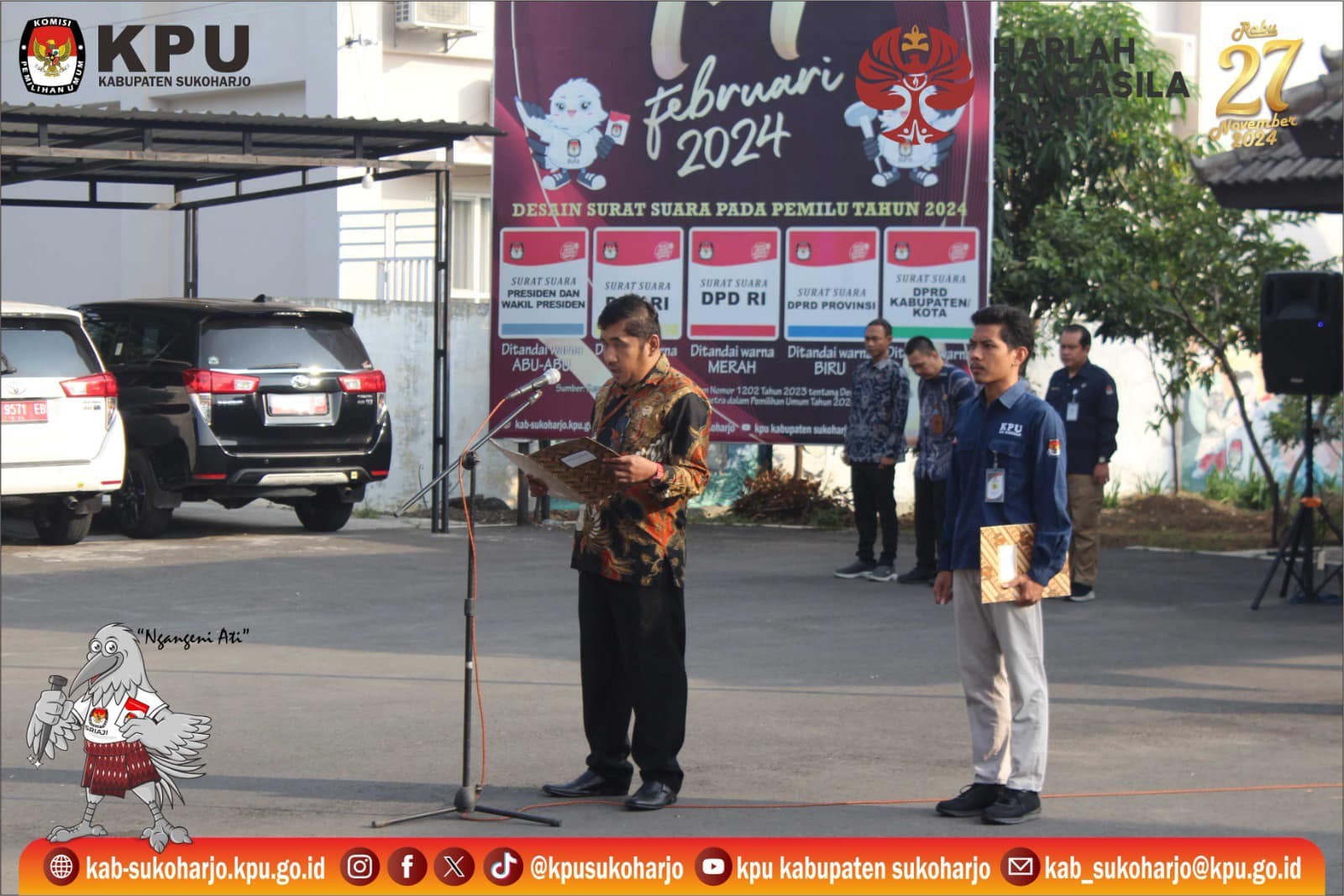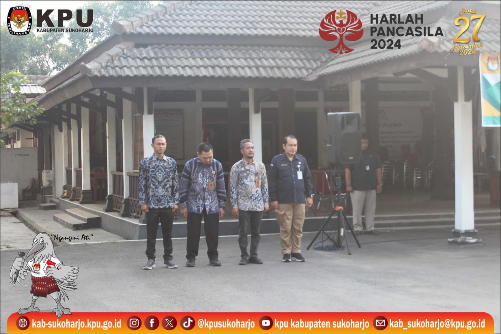 KPU Kabupaten Sukoharjo melaksanakan Upacara Peringatan Hari Lahir Pancasila Tahun 2024 di Halaman KPU Kabupaten Sukoharjo, (Sabtu, 1 Juni 2024).
