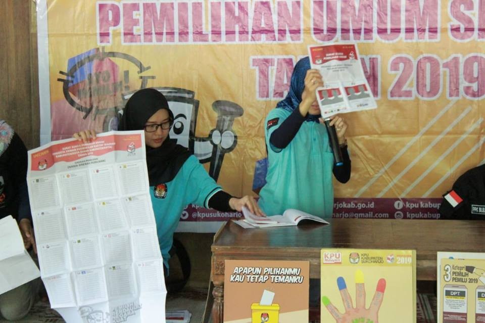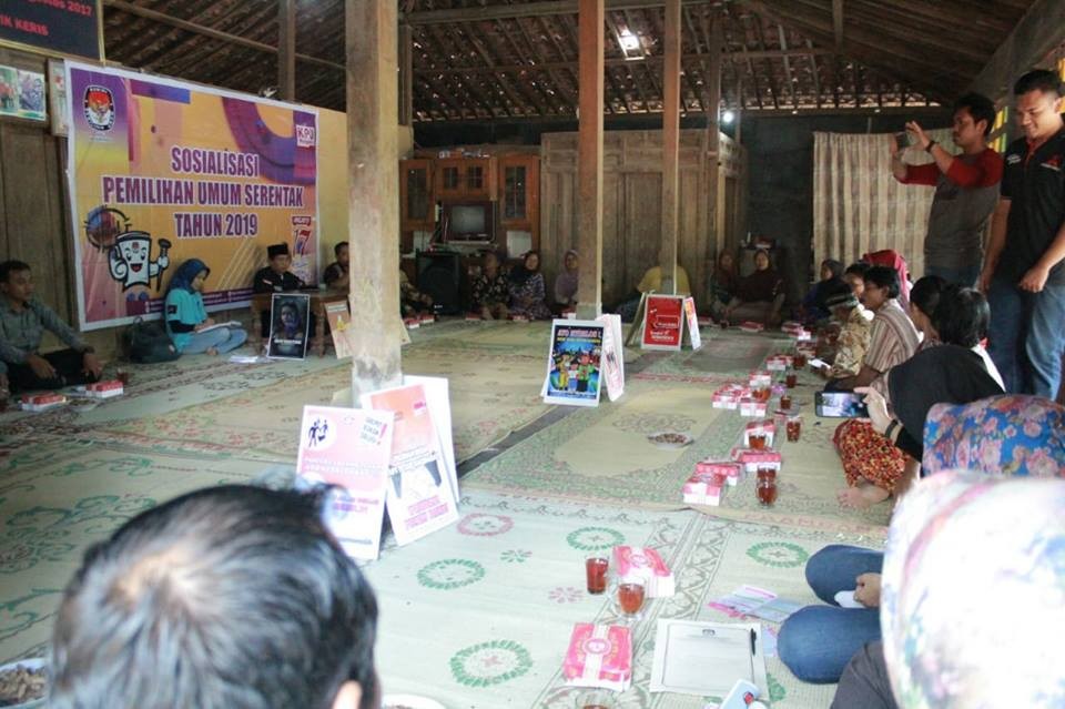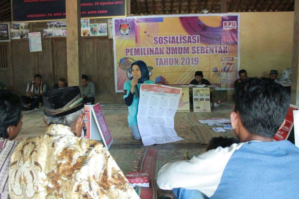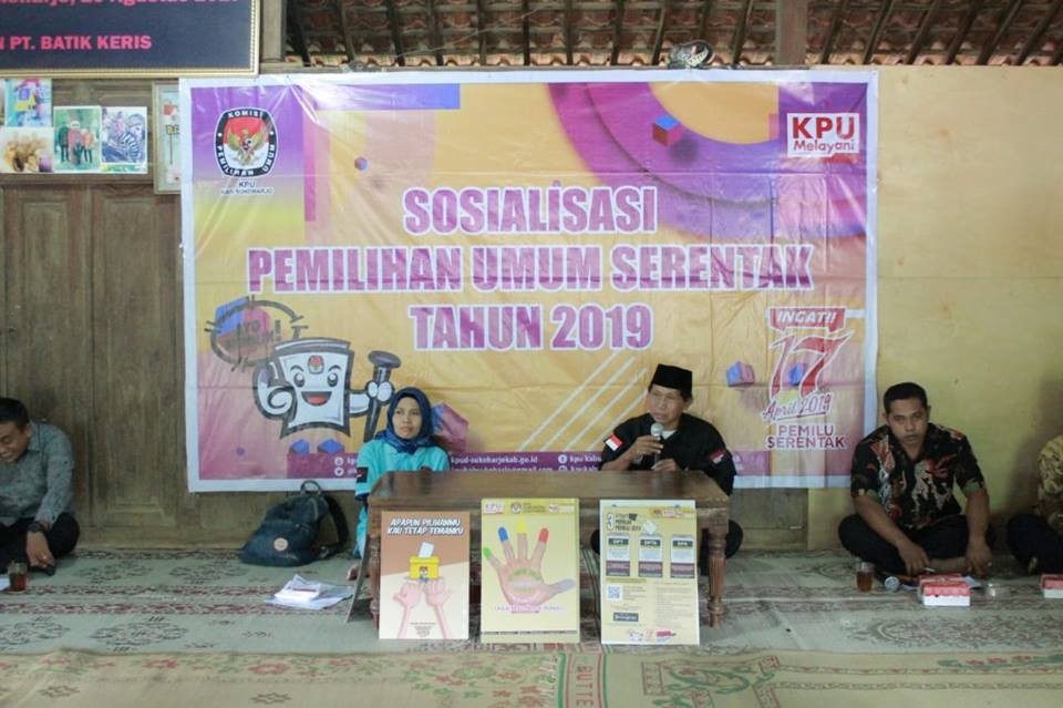Tim sosialisasi pemilu KPU Kabupaten Sukoharjo, Jumat (15/2/2019) bersama dengan Panitia Pemilihan Kecamatan (PPK) dan Panitia Pemungutan Suara (PPS) serta relawan demokrasi menyambangi dukuh Kerjo untuk memberikan sosialisasi pemilu serentak 2019.