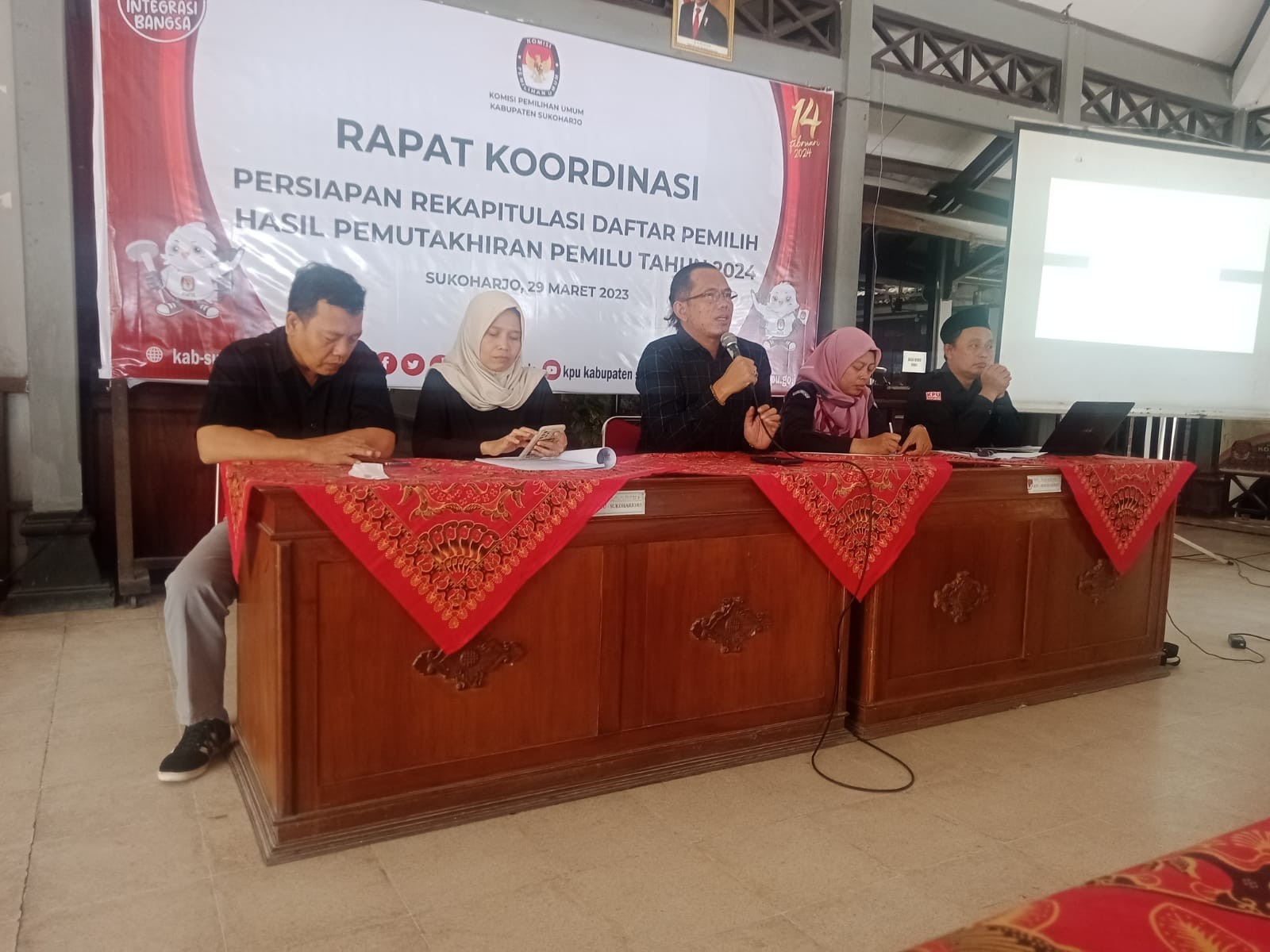 Sukoharjo, kpu.go.id - Ketua KPU Kabupaten Sukoharjo Nuril Huda, Anggota Suci Handayani, dan Sekretaris Suhadi menghadiri Rapat Kerja Bidang Logistik Pemilu 2024 serta Peluncuran Program Votecast KPU Jateng dan Apilkasi VIRTU RJP (Virtual Tour Rumah Joglo Pemilu) yang diselenggarakan oleh KPU Provinsi Jawa Tengah, Jum'at ( 31/3/2023) bertempat di Kantor KPU Provinsi Jawa Tengah Jl. Veteran No. 1 A Semarang. Dibuka oleh Ketua KPU Provinsi Jawa Tengah Paulus Widiyantoro didampingi Anggota Ikhwanudin, Putnawati, Taufiqurrohman, Hendry Wahyono, Muslim Aisha dan Eni Misdayani . Paulus mengatakan bahwa raker kali ini untuk memantapkan persiapan pemilu 2024 khususnya persiapan logistik dan partisipasi masyarakat. Dalam kesempatan itu ia sampaikan juga ucapan terimakasih kepada KPU Kabupaten/kota dan badan adhoc karena KPU Provinsi Jawa Tengah masuk nominasi 10 besar penilaian Komisi Informasi. "Kita masuk nominasi 10 besar Calon Penerima Anugrah Tinarbuka , mudah-mudahan menjadi juara 1,” ujarnya. Dilanjutkan arahan dari Anggota KPU RI August Mellaz menyampaikan program-program besar dalam rangka meningkatkan partisipasi masyarakat. August Mellaz menyampaikan apresiasi kepada KPU Jateng atas peluncuran virtual rumah joglo Pemilu Jateng harapannya dapat meningkatkan partisipasi masyarakat dalam Pemilu 2024. Menyampaikan program nasional antara lain kirab nasional dan Jawa Tengah salah satu titik tujuan singgah kirab dari lintasan 5 titik kirab Pemilu. Kemudian Anggota KPU RI Yulianto Sudrajat memberikan pengarahan persiapan logistik untuk Pemilu 2024 antara lain persiapan aplikasi Silog (Sistem Logistik) yakni mencakup proses perencanaan, pengadaan, pendistribusian kepada KPU Kabupaten/ kota. “Konsep perlengkapan /logistic Pemilu 2024 dengan mengunakan aplikasi Sistim Logistik (silog), pada Pemilu 2008 sudah mengunakan Silog tetapi belum bisa di optimalkan. “ kata Drajad. Dalam Pemilu 2024 Silog harus di gunakan sebaik baiknya. Silog mencakup proses perencanaan, proses pengadaan, sampe pendistribusian ke KPU Kab/ kota terdeteksi, tambahnya lagi. Pemanfaatan teknologi informasi bisa meringankan beban kerja KPU, jelasnya. Dalam rapat kerja ini dilakukan peluncuran Program Votecast KPU Jateng dan Apilkasi VIRTU RJP (Virtual Tour Rumah Joglo Pemilu) dengan penekanan tombol program yang menandai peluncuran resmi hari ini, oleh Yulianto Sudrajat, August Mellaz dan Paulus Widiyantoro. Disaksikan anggota KPU Sukoharjo dan jajaran secretariat Provinsi, ketua, anggota dan sekretaris KPU Kabupaten/Kota Se-Jawa Tengah. Cara menggugah aplikasi virtu dj playstore, tujuannya untuk mensosialisasikan rumah pintar pemilu yg ada di KPU JAteng. Terdiri dari ruang display memuat antara lain sejarah pemilu; Ada ruang audio visualisasi. Diciptakan mampu meningkatkan pengetahuan pemilih yg bisa langsung diakses langsung, semoga bisa memberikan manfaat pada masyarakat Jateng. (sh)