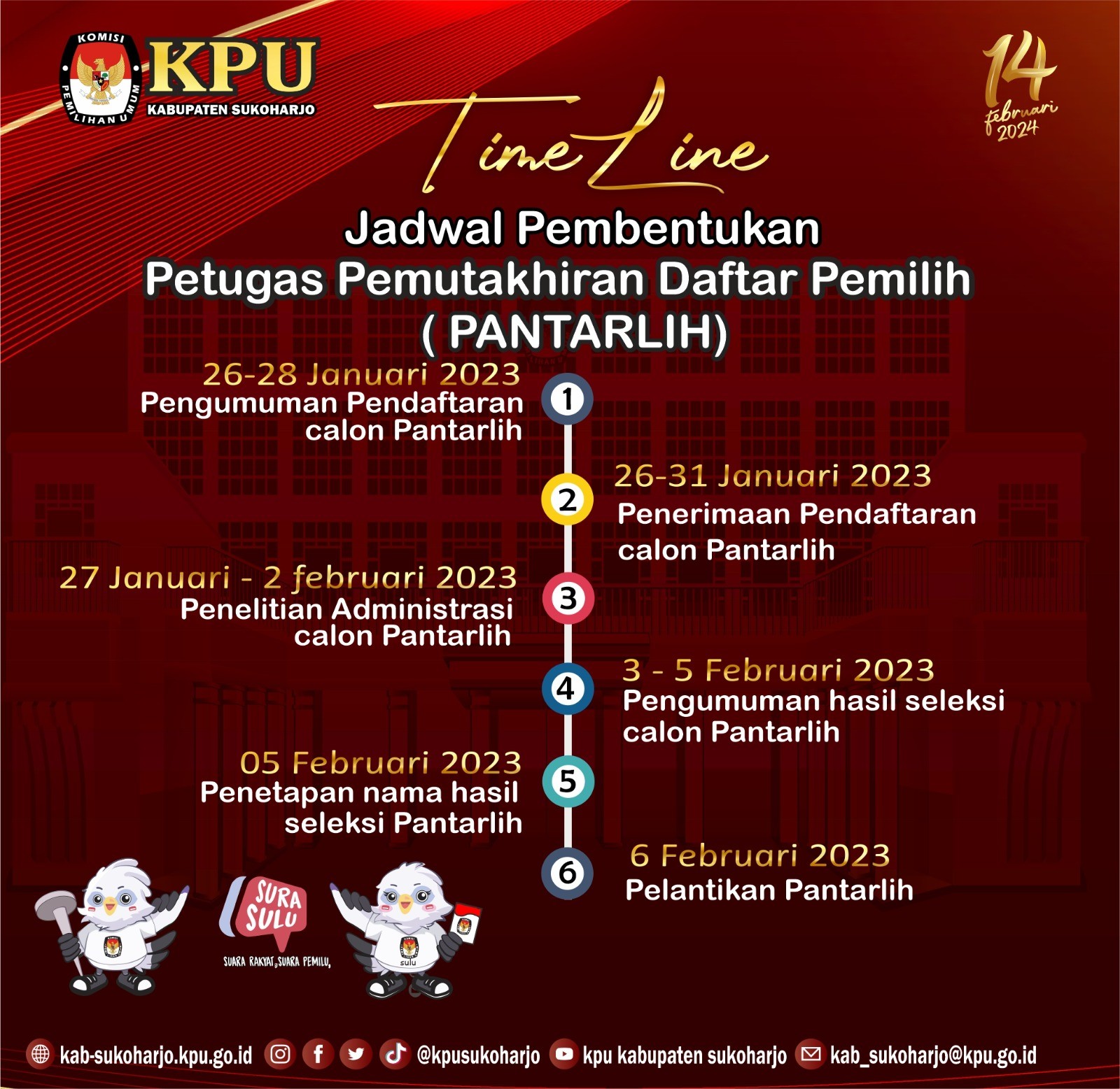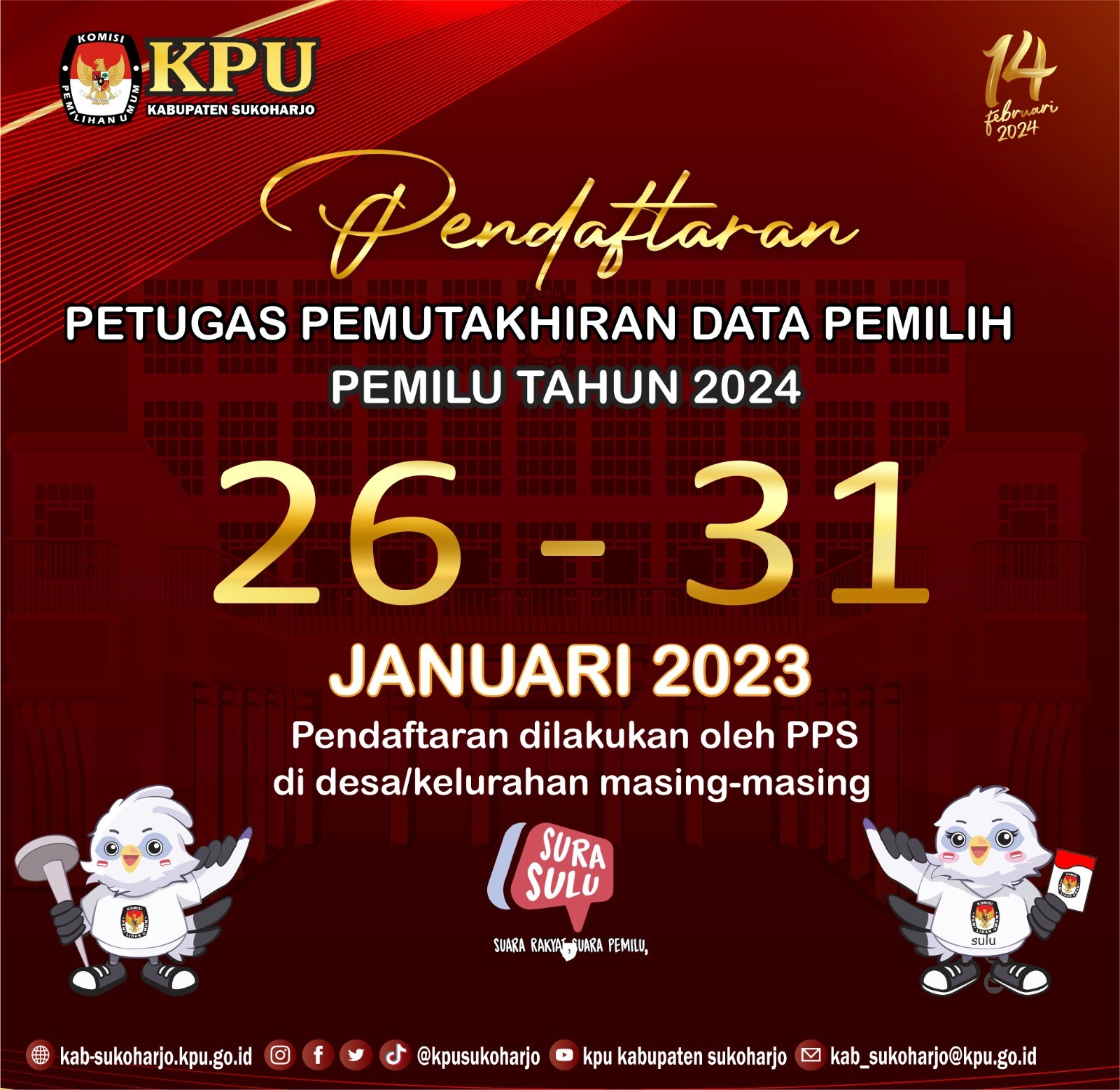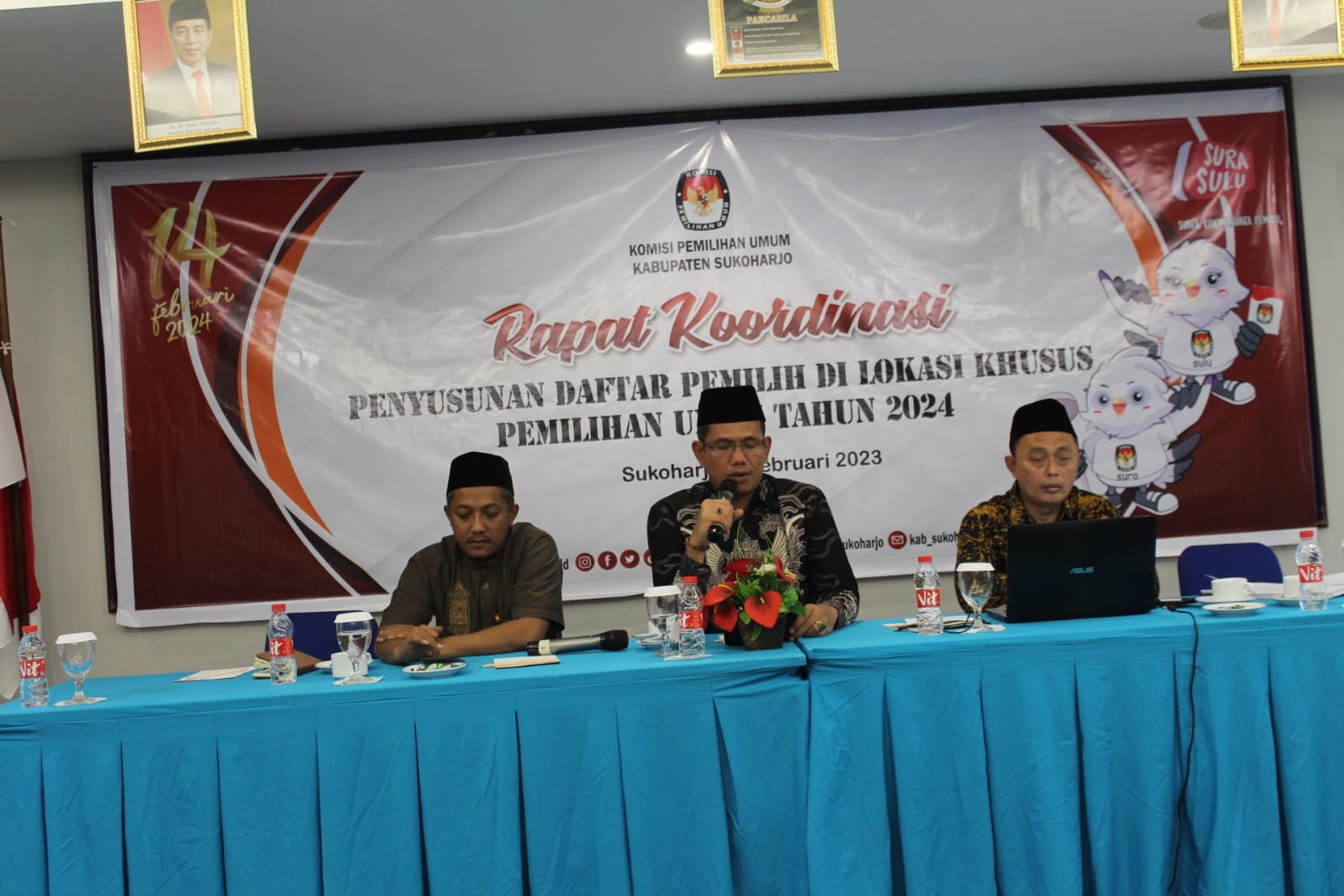 Sukoharjo, kpu.go.id- KPU Kabupaten Sukoharjo mulai melakukan pemetaan TPS di lokasi khusus /Tempat Pemungutan Suara khusus, mempersiapkan lokasi khusus untuk memberikan kemudahan pemilih tertentu menggunakan hak suaranya. Hal itu disampaikan dalam Rapat Koordinasi Penyusunan Daftar Pemilih di Lokasi Khusus Peilihan Umum Tahun 2024, di Hotel Brother Solo Baru, Jumat (03/02/2023). Pemetaan TPS dan TPS Khusus ini bertujuan untuk melayani pemilih yang domisili nya diluar dari Kabupaten Sukoharjo agar lebih mudah mengunakan hak pilihnya pada hari pemungutan suara tanggal 14 Februari tahun 2024 mendatang. Anggota KPU Sukoharjo Suci Handayani membuka acara sekaligus menyampaikan arahan bahwa pemetaan TPS dan TPS khusus didasari oleh Peraturan KPU nomor 7 Tahun 2022. KPU Sukoharjo berupaya melayani pemilih agar bisa mengunakan hak pilihnya di hari H salah satunya dengan melakukan pemetaan TPS di lokasi khusus. Pertimbangannya antara lain karena adanya Pemilih di hari H tidak berada di alamat sesuai dengan KTP el , Pemilih tidak dapat mengurus pindah memilih. Untuk itu KPU melakukan prakarsa dengan menyediakan layanan penyusunan daftar pemilih di lokasi khusus. Adapun kategori lokasi khusus antara lain Rumah tahanan atau lembaga pemasyarakatan, Panti sosial atau panti rehabilitasi, Relokasi bencana, Daerah Konflik. Lokasi lainnya dengan kriteria: Pemilih yang pada hari pemungutan suara tidak dapat menggunakan hak pilihnya sesuai dengan domisili di KTP-el ; Pemilih tersebut terkonsentrasi di suatu tempat. Narasumber rakord ketua KPU Sukoharjo Nuril Huda dan Ketua Bawaslu Sukoharjo, Bambang Muryanto. Nuril Huda memaparkan tentang kategori lokasi khusus. Berdasarkan Peraturan KPU Nomor 7 Tahun 2022, lokasi khusus ini meliputi rumah tahanan, panti sosial, tempat relokasi bencana, dan daerah konflik. Sekolah berasrama hingga kilang minyak juga masuk kategori lokasi khusus. Kemudian persiapan dalam penyiapan TPS di lokasi khusus. Yakni KPU Kabupaten Sukoharjo melaksanakan sosialisasi dan koordinasi dengan pejabat yang berwenang di lokasi khusus tentang kebutuhan pemutakhiran data Pemilih di wilayah tersebut. Permohonan pejabat yang berwenang di lokasi khusus kepada KPU melalui KPU Kabupaten Sukoharjo untuk dilakukan pemutakhiran di wilayah tersebut. Semoga dengan adanya TPS khusus dapat mempermudah pemilih dan meningkatkan partisipasi pemilih dengan kemudahan tersebut, ujar Nuril. Beberapa peserta rakord memberikan masukan untuk memaximalkan pelayanan pemilih bisa mengunakan hak pilihnya di TPS khusus. Anggota KPU Divisi Perencanaan Data dan Informasi, Cecep Choirul Sholeh memandu rapat koordinasi yang dihadiri tamu undangan dari Polres Sukoharjo, Kodim 0726, Dinkes, Disperindag, Kemenag, Disdukcapil, Dinsos, RSUD Ir Soekarno, RS Muhammadiyah Sukoharjo, Klinik Dokter Guntur , Puskesmas, Sekolah SMA Cendikia, Panti Rehabilitasi Nurul Huda. Juga UNS, UIN, UNIVET, PT Sritex, MTA, NU, LDII, Muhammadiyah, 12 Pondok Pesantren. Rakord juga diikuti oleh anggota Panitia Pemilihan Kecamatan (PPK) Divisi Mutarlih.(sh)