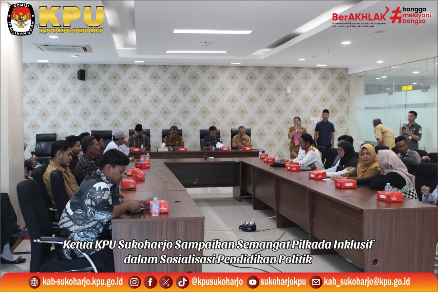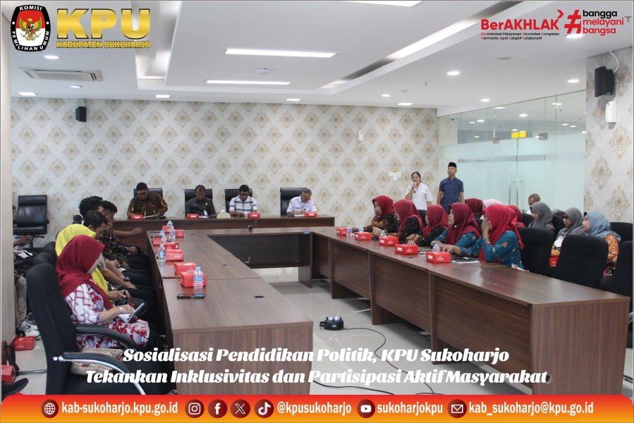 Sukoharjo – Komisi Pemilihan Umum (KPU) Kabupaten Sukoharjo menggelar kegiatan Sosialisasi Pendidikan Politik pada Minggu, bertempat di Gereja Hati Kudus Yesus Sukoharjo. Kegiatan ini dihadiri oleh sekitar 40 peserta dari kalangan umat Katolik. Ketua KPU Kabupaten Sukoharjo, Syakbani Eko Raharjo, hadir sebagai narasumber dalam kegiatan tersebut. Dalam paparannya, Syakbani menyampaikan apresiasi dan terima kasih kepada umat Katolik yang selama ini telah berperan aktif dalam penyelenggaraan Pemilu dan Pilkada, baik sebagai pemilih maupun sebagai penyelenggara, khususnya yang tergabung dalam Kelompok Penyelenggara Pemungutan Suara (KPPS). Lebih lanjut, Syakbani mengajak umat untuk terus berpartisipasi aktif dalam pemutakhiran data pemilih, antara lain dengan menginformasikan kepada KPU apabila terdapat umat yang telah berusia 17 tahun atau telah menikah meskipun belum berusia 17 tahun, pindah domisili, perubahan status dari TNI/Polri menjadi sipil, maupun jika ada anggota umat yang telah meninggal dunia. Di akhir sesi, Syakbani juga menekankan pentingnya menjaga kerukunan dan persaudaraan dalam kehidupan bermasyarakat dan bernegara sebagai bagian dari tanggung jawab bersama dalam menjaga keutuhan demokrasi. Kegiatan ini menjadi bagian dari upaya KPU Kabupaten Sukoharjo dalam memperluas jangkauan pendidikan politik kepada seluruh elemen masyarakat lintas agama dan kepercayaan.