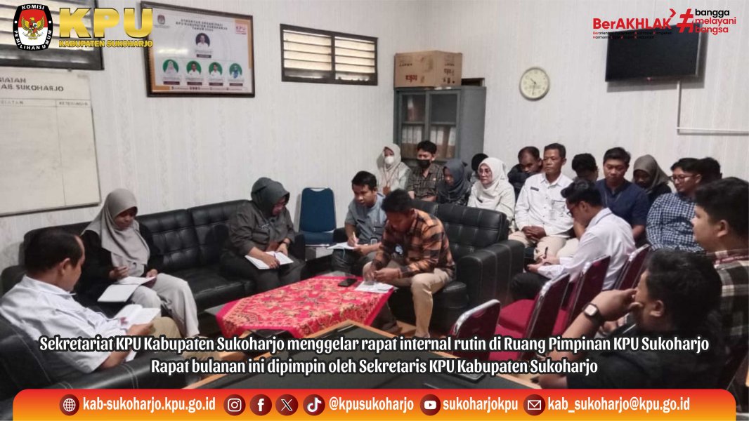 Rapat ini menjadi bagian penting dalam upaya menjaga koordinasi kelembagaan dan memastikan seluruh agenda KPU Sukoharjo berjalan tertib, efektif, dan akuntabel.