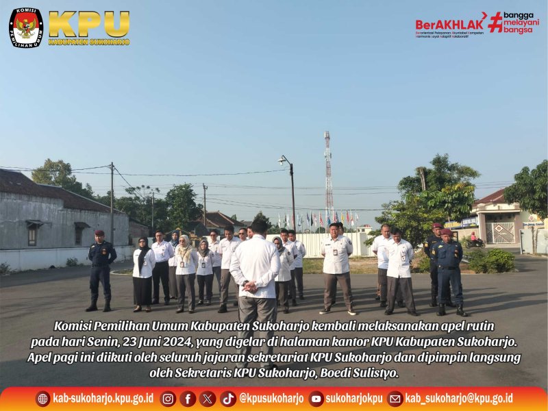 Menutup rapat, Sekretaris KPU menegaskan pentingnya disiplin, sinergi, dan penyelesaian tugas administrasi secara tepat waktu. Ia juga mengingatkan seluruh jajaran untuk mengikuti apel pagi setiap hari Senin, sebagai bagian dari penguatan kedisiplinan dan etos kerja.