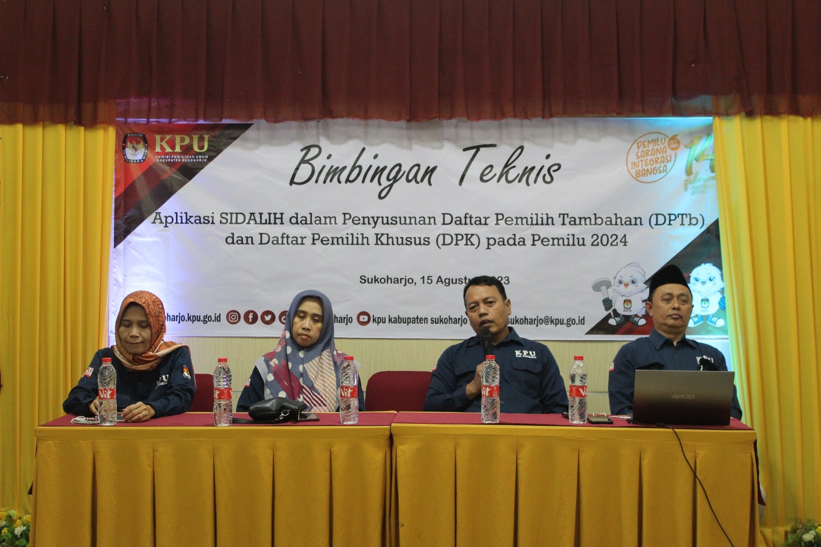 Sukoharjo, kpu.go.id- KPU Kabupaten Sukoharjo mengelar Bimbingan Teknis Aplikasi Sidalih dalam Penyusunan Daftar Pemilih Tambahan (DPTb) dan Daftar Pemilih Khusus (DPK) pada Pemilu 2024, Selasa (15/8/2023) di Hotel Sarila Sukoharjo.