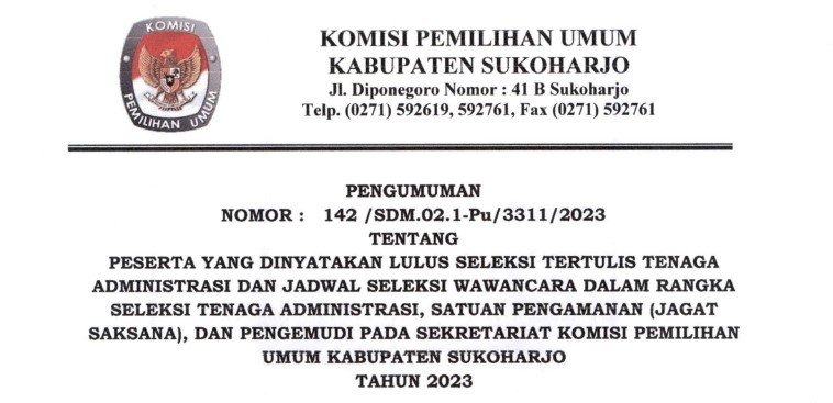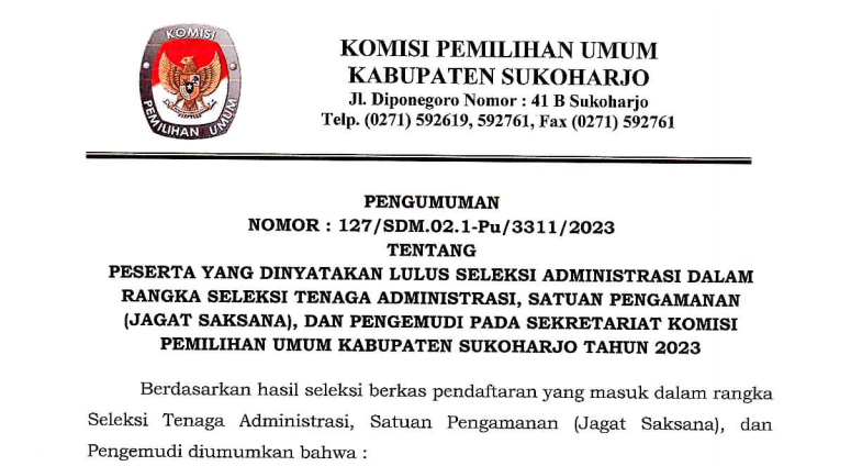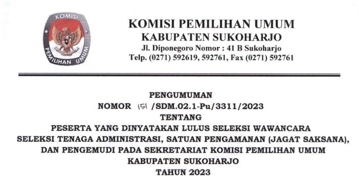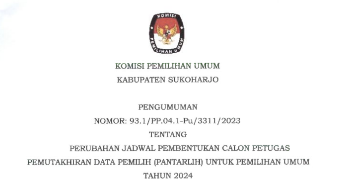 Pengumuman KPU Sukoharjo No. 93.1 tahun 2023 ............