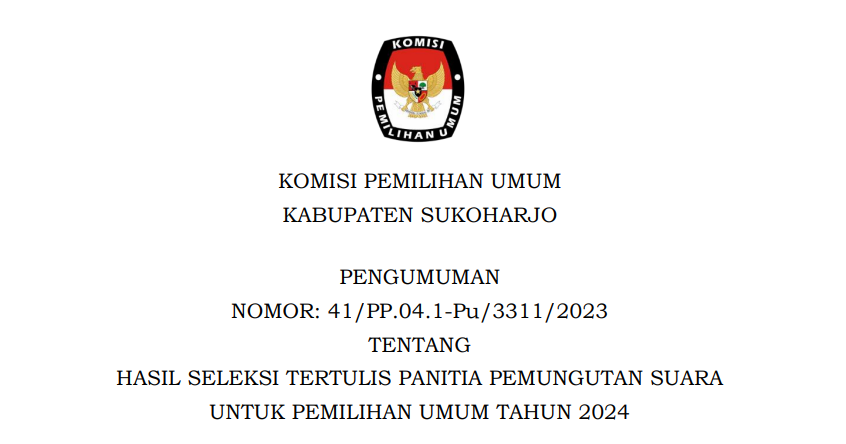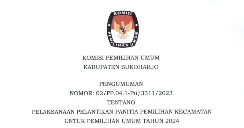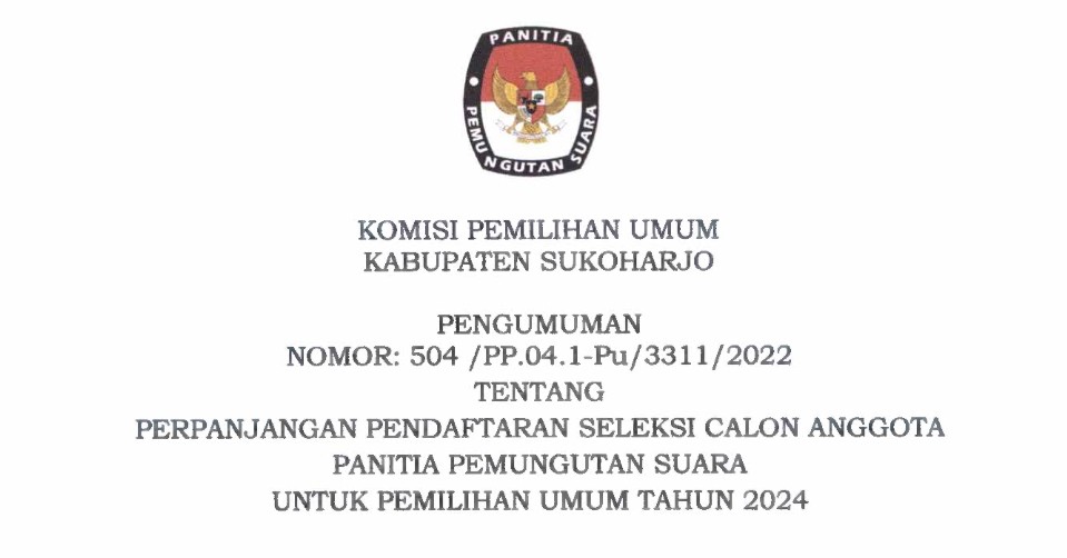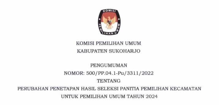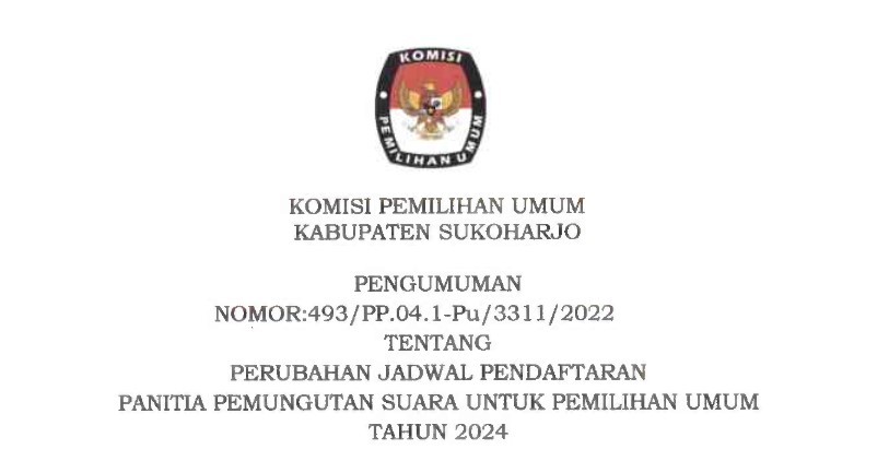 Pengumuman KPU Sukoharjo No. 493 tahun 2022 ............