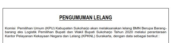 Bagi warga Kabupaten Sukoharjo, yang belum terdaftar sebagai pemilih, mengalami perubahan indentitas diri, atau memberikan masukan terkait pemilih Tidak Memenuhi Syarat (TMS), dapat melaporkan secara online di http://bit.ly/dpbsukoharjo, atau datang langsung ke kantor KPU Kabupaten Sukoharjo, Jl. Diponegoro 41B Sukoharjo. (CCS)