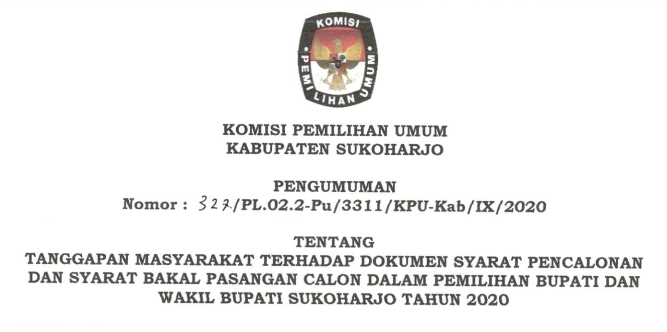Nomor : 327/PL.02.2-Pu/3311/KPU-Kab/IX/2020