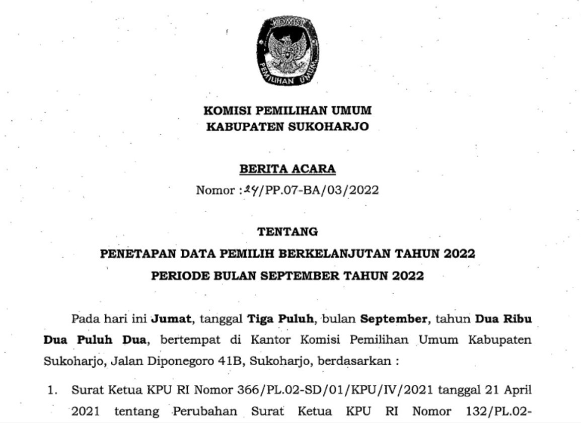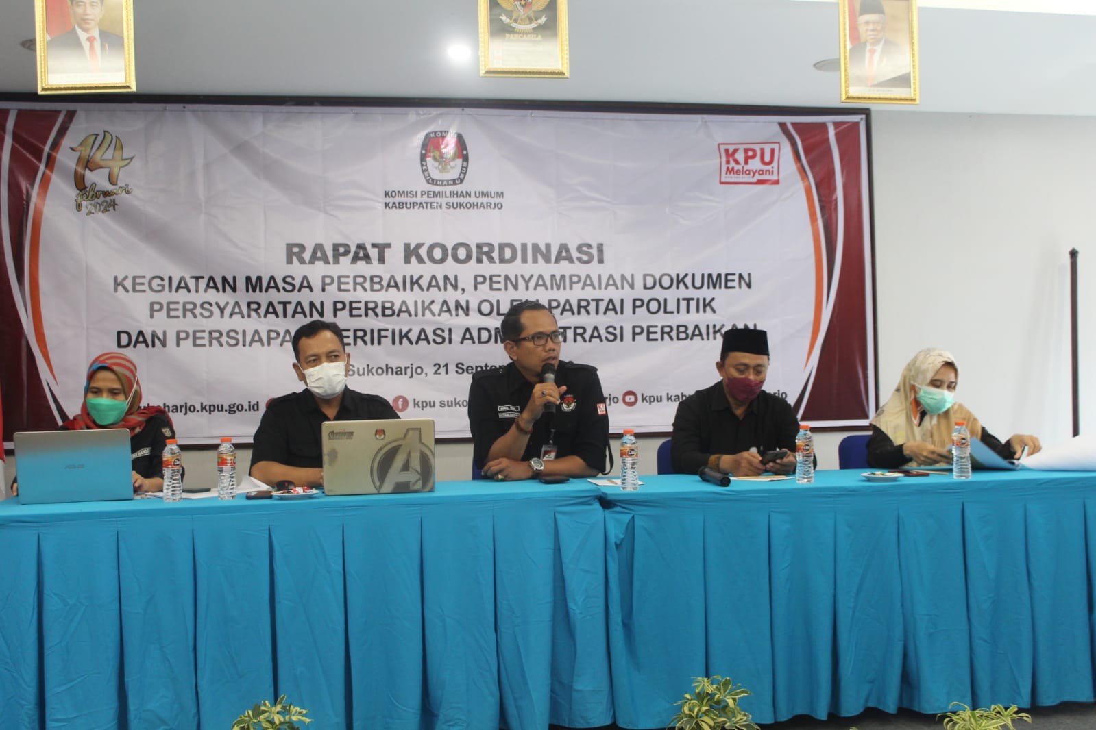 Sukoharjo, kpu.go.id - KPU Sukoharjo melakukan klarifikasi secara langsung tanggapan masyarakat terhadap keabsahan dokumen persyaratan partai politik (Parpol) termin kedua, Sabtu (01/10/22) di Pendapa Kantor KPU Jalan Diponegoro no 41B Joho Sukoharjo. Tampak hadir Anggota KPU Sukoharjo Syakbani Eko Raharjo, Ita Efiyati dan Suci Handayani melayani masyarakat. Terdapat 19 orang terundang untuk melakukan klarifikasi secara langsung karena nama masuk dalam daftar anggota 14 parpol di Sukoharjo. Ada warga yang melaporkan 1 nama lewat 2 laporan, sehingga hanya terhitung 18 pelapor klarifikasi. Warga yang menghadiri undangan KPU Sukoharjo terverifikasi 16 orang. Satu orang diklarifikasi melalui video call karena bertempat tinggal di Jakarta. Sementara terdapat 2 warga masyarakat yang belum bisa hadir karena kecelakaan dan ada kegiatan lain, sehingga dilakukan penjadwalan untuk klarifikasi di lain hari. Mayoritas masyarakat yang melakukan klarifikasi karena yang bersangkutan sebagai ASN baik PNS maupun PPPK. “Klarifikasi secara langsung ini mengundang 18 orang yang namanya terdata di anggota Parpol tetapi yang bersangkutan menyatakan bukan anggota Parpol.” Ujar Syakbani. Sebelumnya warga tersebut melaporkan diri melalu tanggapan masyarakat secara online, selanjutnya KPU Sukoharjo mengudang mereka untuk melakukan klarifikasi langsung, katanya. Sebanyak 5 partai bisa menghadiri klarifikasi tanggapan masyarakat ini yaitu PAN, PKS, PKB, Partai GARUDA dan Partai GELORA. PDI Perjuangan, Partai Ummat, Partai Pelita, Partai Pandu Bangsa, Partai PSI, Partai Gerindra, Partai PBB, Partai Republiku Indonesia dan Partai Buruh tidak hadir dalam kesempatan ini. Sebelumnya, KPU Sukoharjo telah melakukan klarifikasi secara langsung tanggapan masyarakat terhadap keabsahan dokumen persyaratan partai politik (Parpol) termin pertama pada Sabtu (10/09/2022). Klarifikasi nama warga yang masuk ke dalam Sipol tanpa sepengetahuan ybs pada termin pertama dihadiri 23 orang dari berbagai latar belakang profesi . Seperti Pegawai Negeri Sipil atau PNS, Pegawai Pemerintah dengan Perjanjian Kerja (PPPK) pegawai Badan Usaha MIlik Negara (BUMN), pengurus Badan Usaha Milik Desa (BUMDes) dan juga guru swasta hingga tenaga honorer. Kalrifikasi secara langsung tanggapan masyarakat masih dilakukan untuk beberapa termin kedepan. (sh)