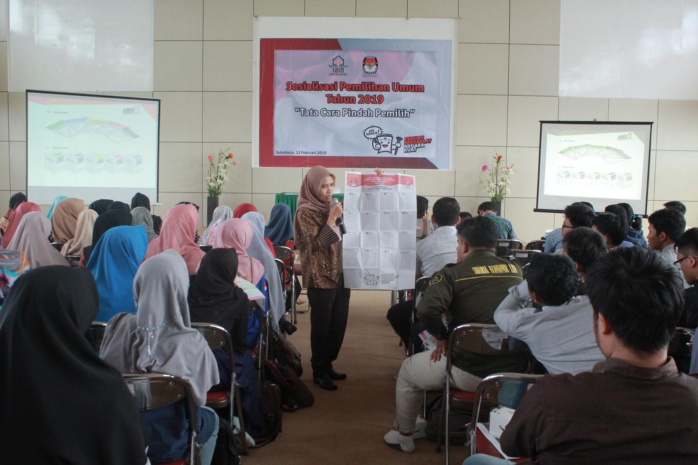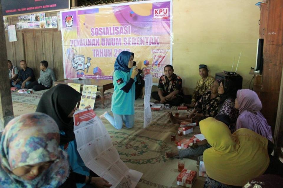 KPUSKH- Dukuh Kerjo merupakan salah satu dukuh yang berada di Desa Kedungsono Kecamatan Bulu Kabupaten Sukoharjo. Untuk menuju dukuh terpencil tersebut membutuhkan waktu lebih dari satu jam dari ibukota kabupaten Sukoharjo. Meskipun infrastuktur jalan bagus dengan jalan rapi yang dibeton rabat , tetapi untuk menemui 17 KK dukuh yang berbatasan dengan kabupaten Wonogiri ini harus melalui jalan yang berliku, naik turun. Tim sosialisasi pemilu KPU Kabupaten Sukoharjo, Jumat (15/2/2019) bersama dengan Panitia Pemilihan Kecamatan (PPK) dan Panitia Pemungutan Suara (PPS) serta relawan demokrasi menyambangi dukuh Kerjo untuk memberikan sosialisasi pemilu serentak 2019. Secara geografis, Dukuh Kerjo berada di perbatasan Kecamatan Manyaran Kabupaten Wonogiri. Perjalanan warga Kerjo ke Wonogiri lebih dekat ,hanya sekitar 20 menit dibandingkan dengan perjalanan ke kecamatan Bulu. Dukuh Kerjo terdiri dari 17 KK, sebagian warganya bekerja di luar kecamatan. Menurut ketua RT, Norejo (75 tahun), sekitar 60 warganya mempunyai hak pilih dan saat ini bekerja di luar kabupaten Sukoharjo. Tetapi mereka memastikan akan pulang saat pemungutan suara pada 17 April nanti. “Sebagian besar warga dukuh ini merantau, tetapi kami pastikan saat coblosan semua pulang,” tutur Norejo. Ketua Kadus , Frendi Adi Prasetyo juga mengiyakan dan menyakini pemilih di dukuh Kerjo akan mengunakan hak pilihnya tanggal 17 April nanti di dusunnya. Hal itu berdasarkan pengalaman selama ini, dimana warga yang bekerja merantau selalu pulang saat Pemilu. Dari sosialisasi tersebut , warga yang sebagian ibu-ibu mengeluh akan kesulitan mencoblos dengan surat suara yang berukuran besar, apalagi tiga surat suara (DPRRI,DPRD provinsi dan DPRD Kabupaten) tidak ada foto caleg. “Pripun niku, kulo binggung. Lha sing di coblos ageng,” tutur Mbah Urip (77 tahun) sambal mengeleng-gelengkan kepala saat diperlihatkan ukuran surat suara. Mbah Marni(68 tahun) lain lagi, ia bisa membaca tetapi akan kesulitan menentukan pilihan mmeilih calon anggota DPR karena di surat suara hanya mencantumkan nama caleg. “Lha saya yang bisa baca saja binggung karena tidak ada foto caleg, apalagi yang sudah tua dan tidak bisa membaca.” Keluhnya. Suci Handayani, komisioner KPU Sukoharjo memberikan penjelasan tentang tata cara pencoblosan, ia berharap warga tidak salah dalam mencoblos. “Surat suara berukuran besar, saat membukanya tidak usah tergesa-gesa, dan dipastikan mencoblos dengan benar agar surat suara tetap sah.” Seluruh warga yang hadir mengaku senang mengetahui pemilu 2019 dan surat suara yang besar dari penjelasan tim KPU Kabupaten Sukoharjo. Mereka memastikan akan datang ke TPS meskipun jarak TPS lumayan jauh dari dukuh Kerjo. (SH)