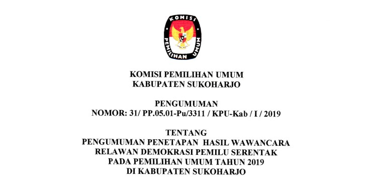 KPU Sukoharjo Butuh 16.814 Orang KPPS