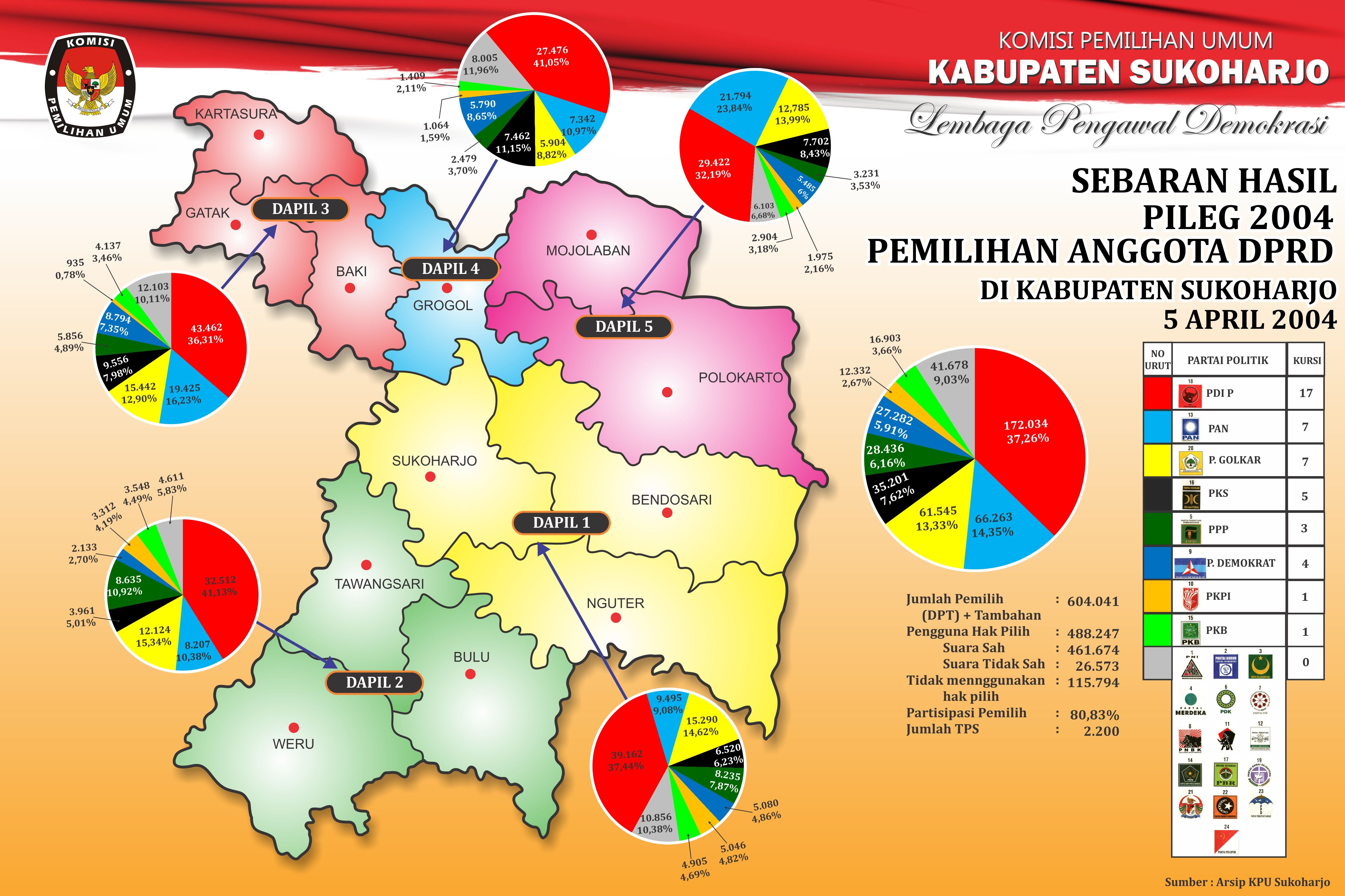 Berikut ini hasil pemilu dari tahun 2004-2010 di TINGKAT KAB. SUKOHARJO