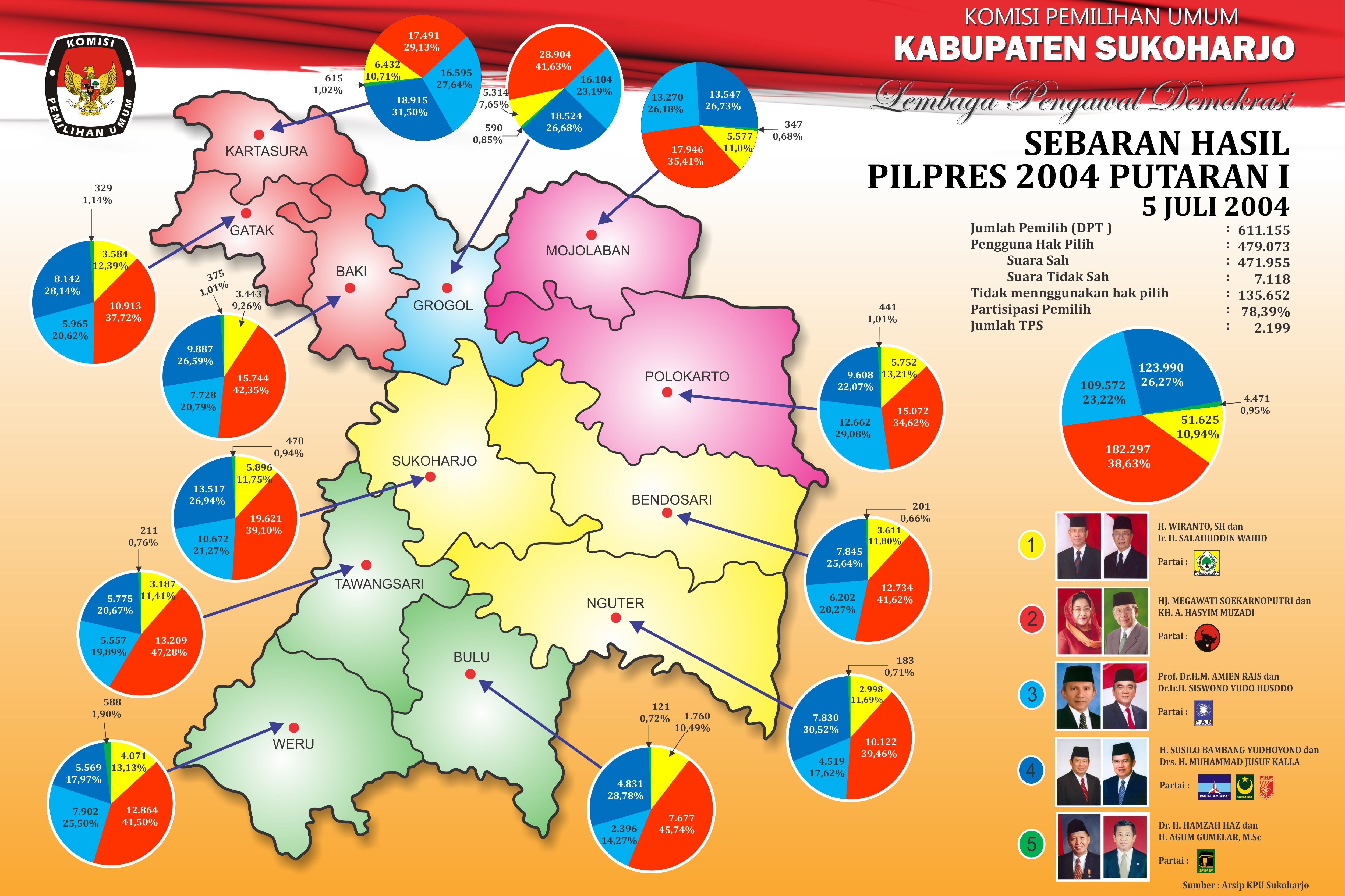 2. Hasil Pilpres tahun 2004 putaran I tingkat KABUPATEN SUKOHARJO