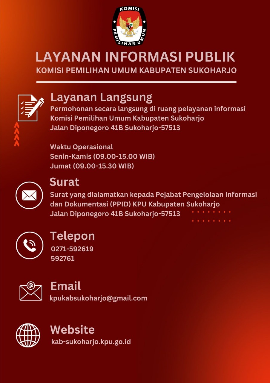 Pelayanan informasi KPU Kabupaten Sukoharjo akan dilayani pada :