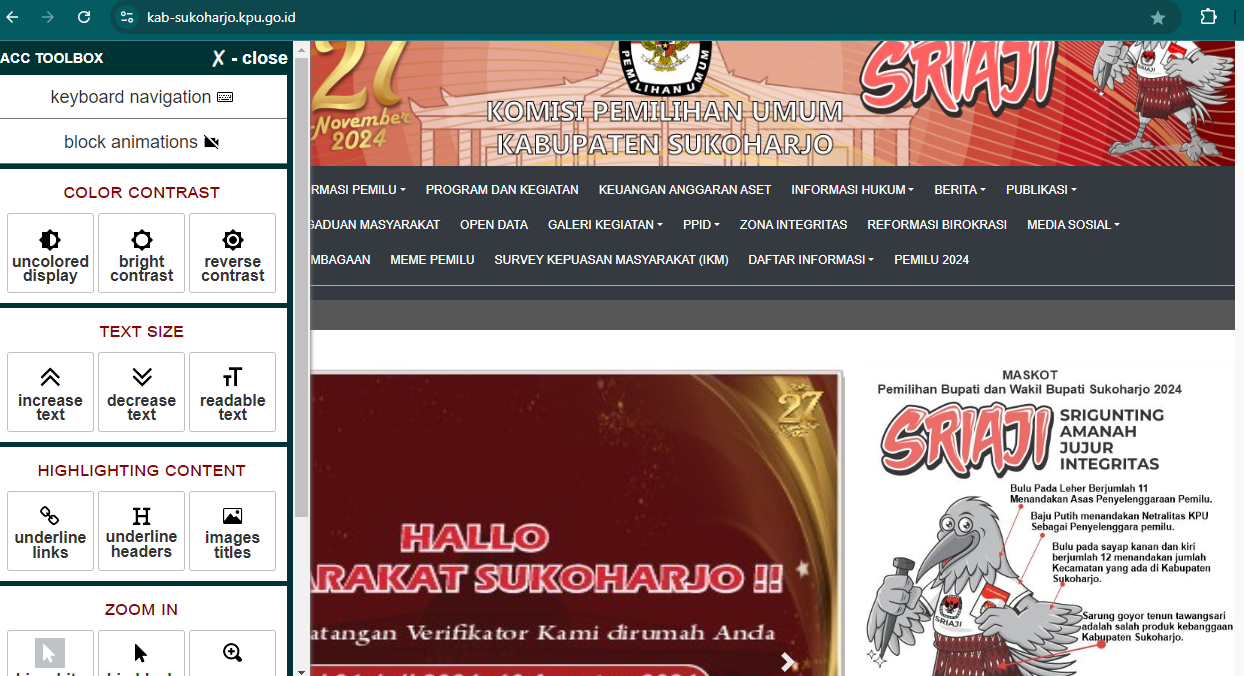 Untuk melayani Informasi, Secara Online kami sudah menyediakan tools untuk membantu Pemohon informasi difabel pada website kami , cukup dengan tekan tombol Ctrl + F2 atau klik tombol tersebut untuk menampilkan tools yang membantu difabel. dalam akses tools ini juga akan dibantu petugas PPID.