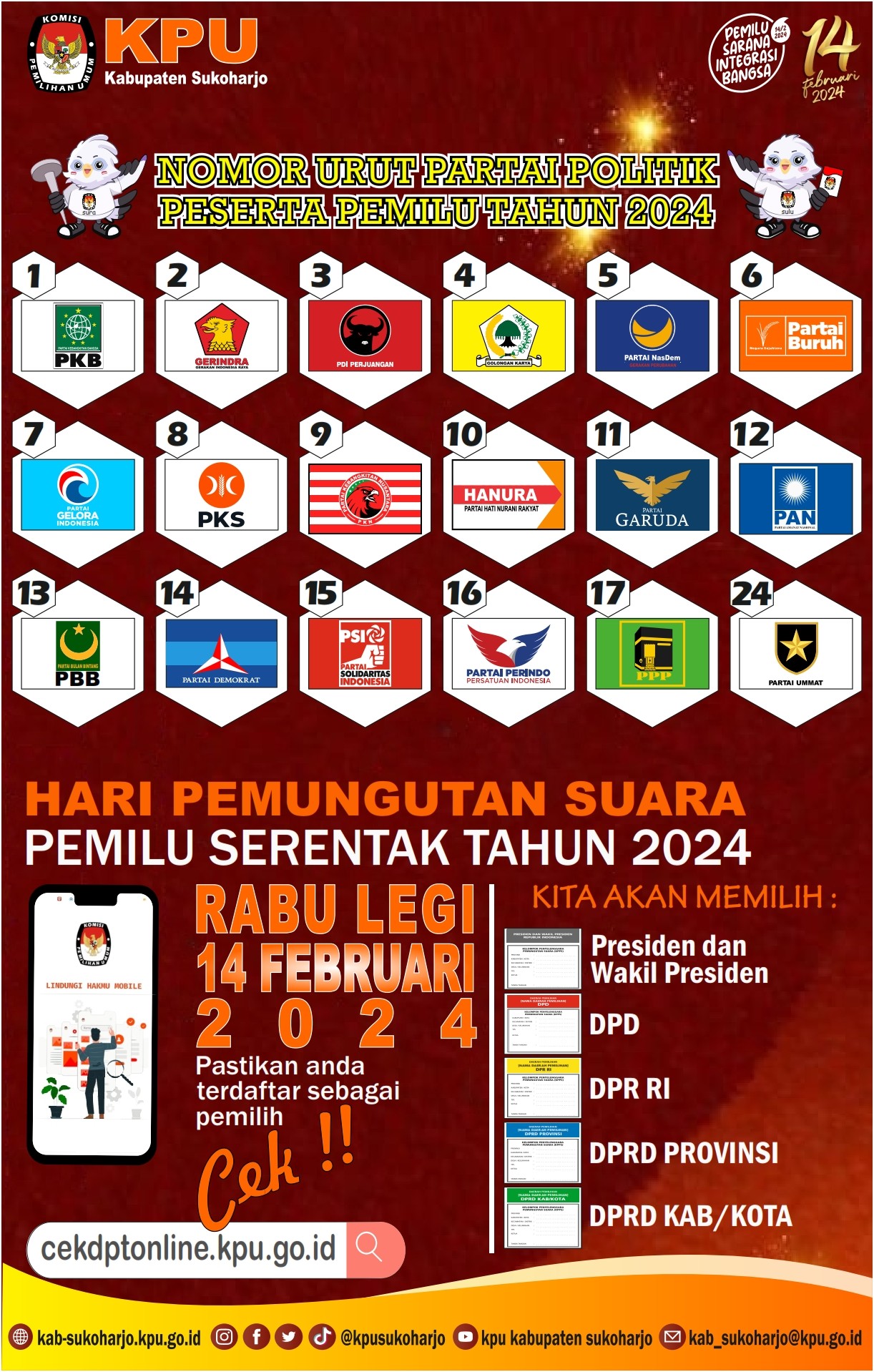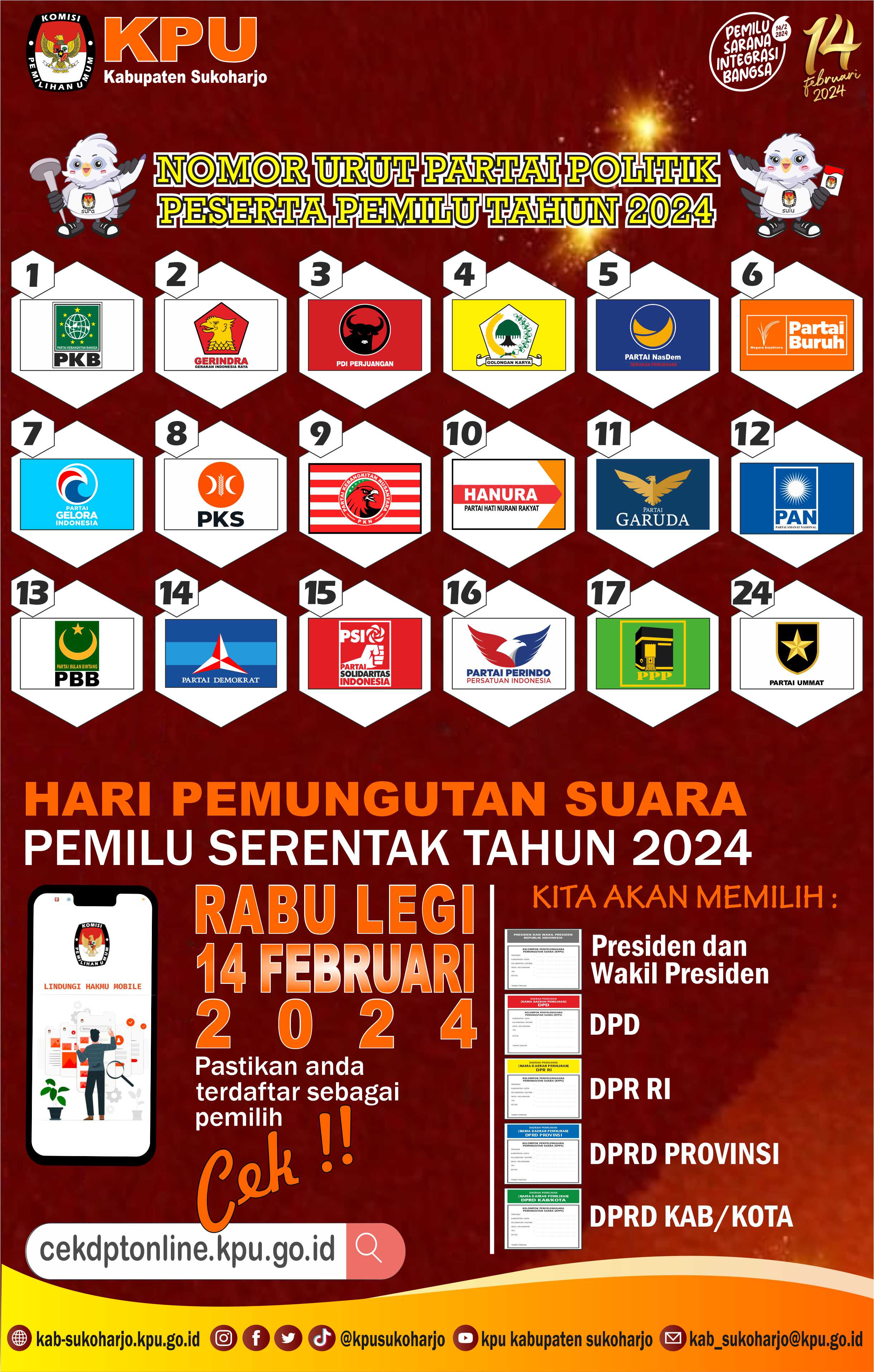 Berikut ini Desain MEME PEMILU , baik dari KPU Kabupaten Sukoharjo, KPU Provinsi Jateng ataupun dari KPU RI :