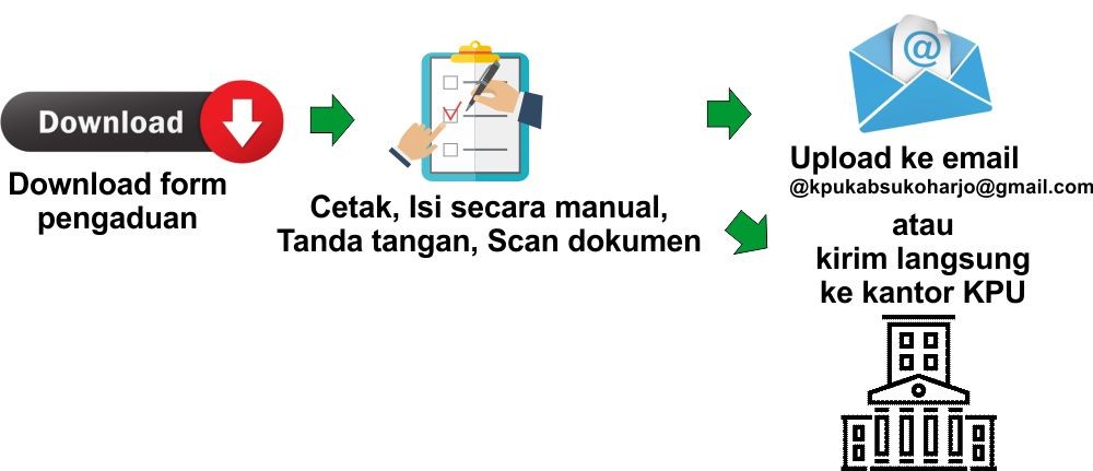 Untuk mewujudkan pemerintahan yang baik dan untuk membangun kepercayaan masyarakat terhadap pelayanan publik yang dilakukan KPU Kabupaten Sukoharjo , perlu dilakukan penataan pelayanan di antaranya membangun fasilitas kepada masyarakat yang bisa melaporkan langsung akan semua tindakan pejabat publik dalam menjalankan tugas dan fungsinya di KPU Kabupaten Sukoharjo jika terjadi dugaan pelanggaran.